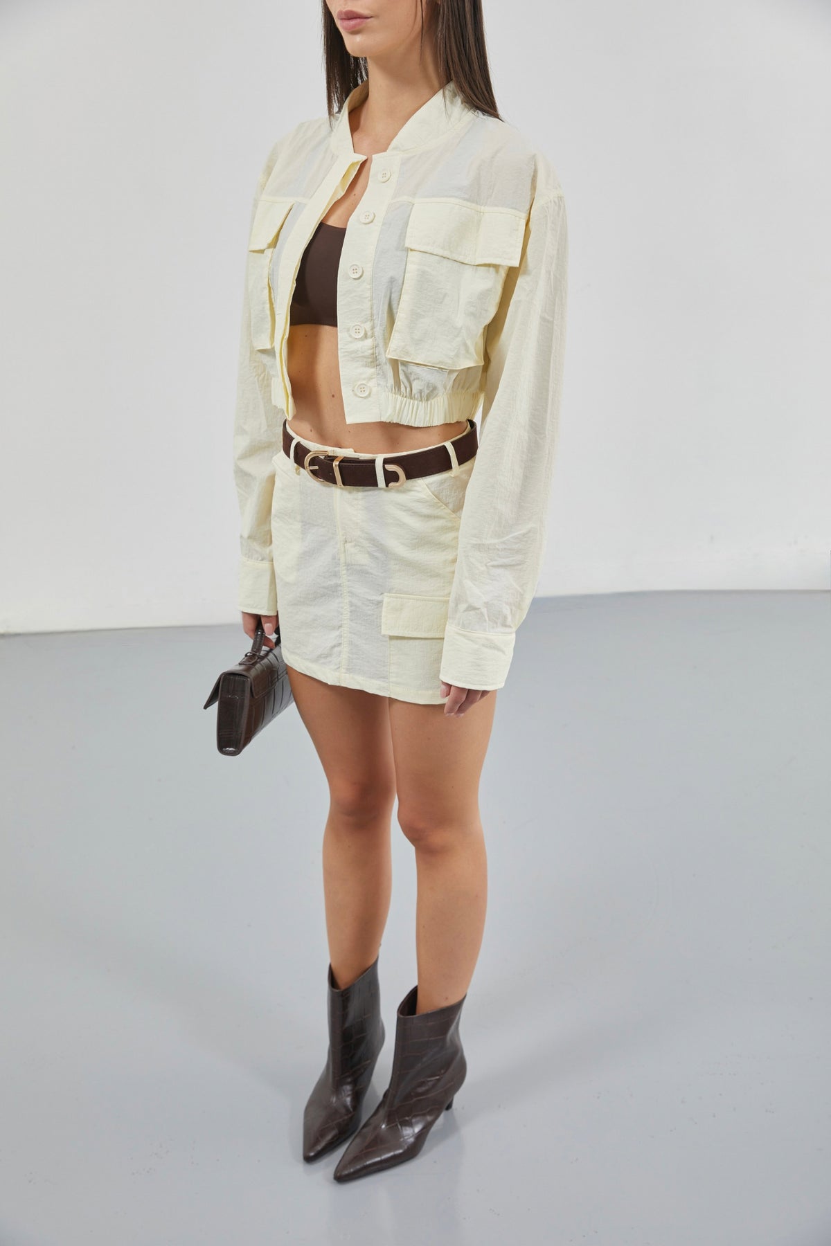 Pocket Detail Parachute Ecru Skirt
