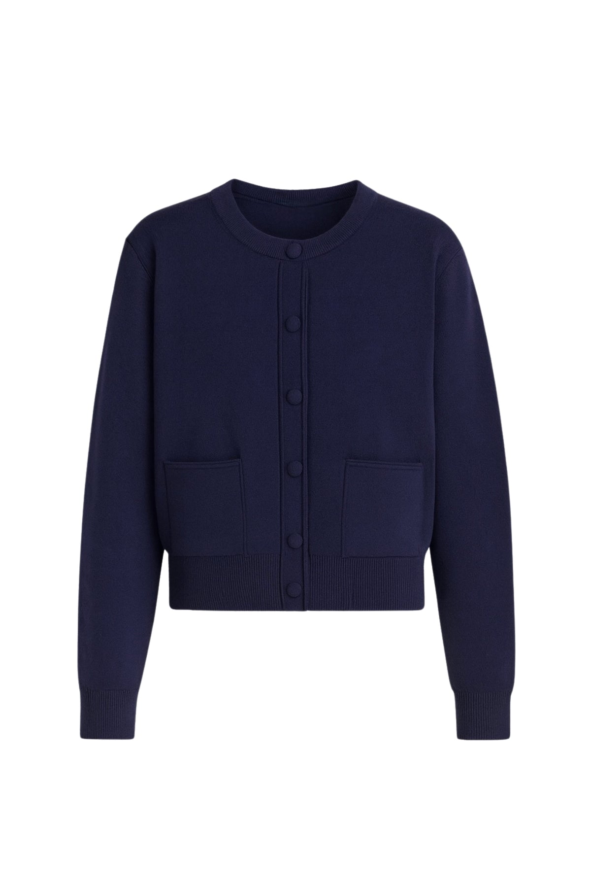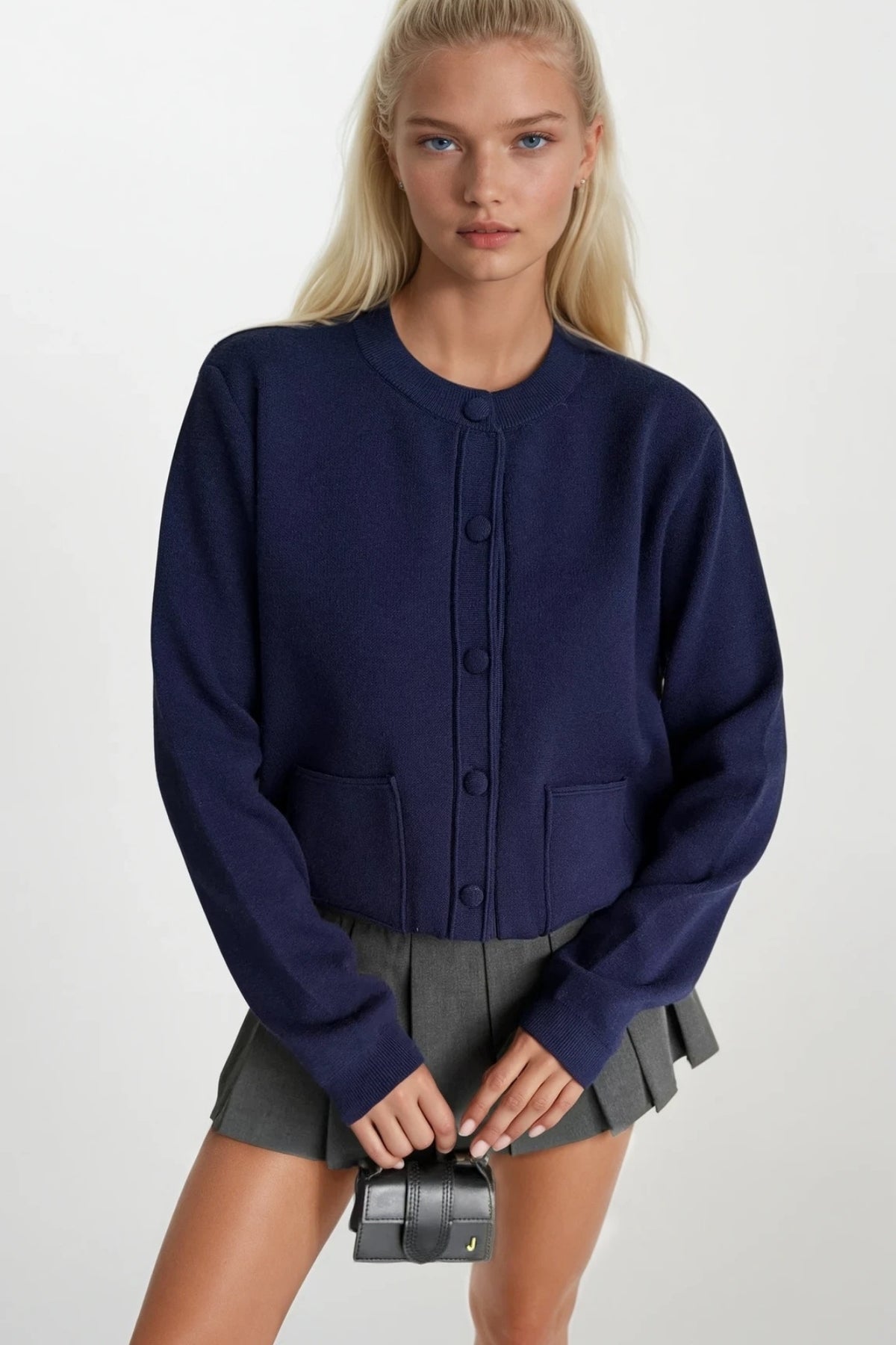 Düğmeli Çift Cepli Lacivert Triko Hırka