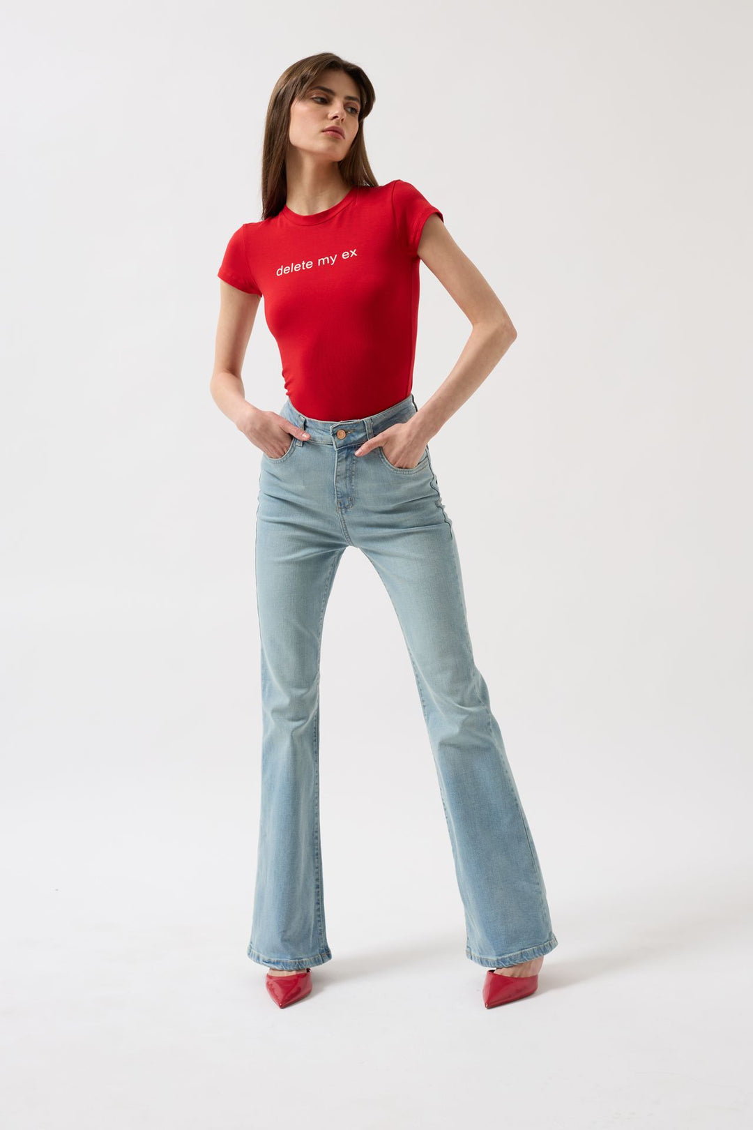Wide-leg jeans offer a comfortable yet stylish look with their wide-leg cut. They can be paired with basic tops or crop tops.