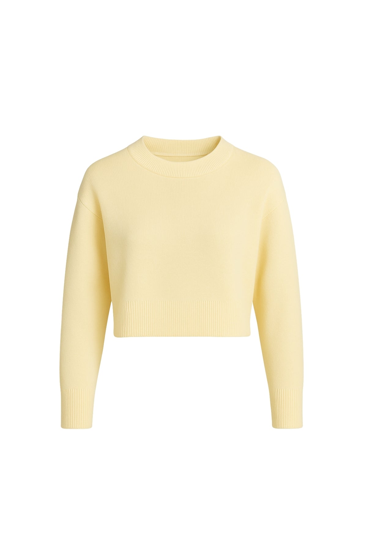 Bisiklet Yaka Crop Sarı Triko Kazak