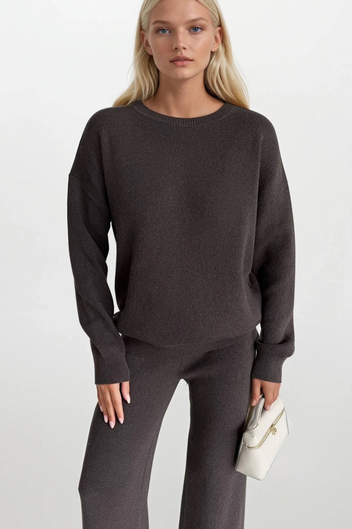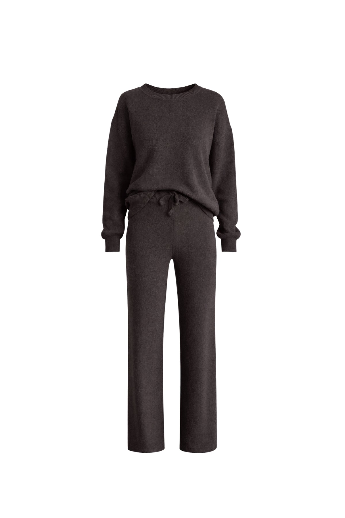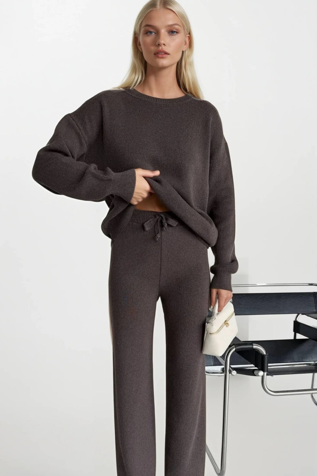 Bisiklet yaka kazak ve uyumlu pantolon ile komple bir görünüm sunar. Triko kumaşı sayesinde yumuşak, esnek ve rahat bir kullanım sağlar. Kahverengi rengi zamansız bir şıklık katarken, her mevsim rahatlıkla kullanılabilir. Takım olarak kullanılabileceği gibi, kazak ve pantolon ayrı ayrı da kombinlenebilir.