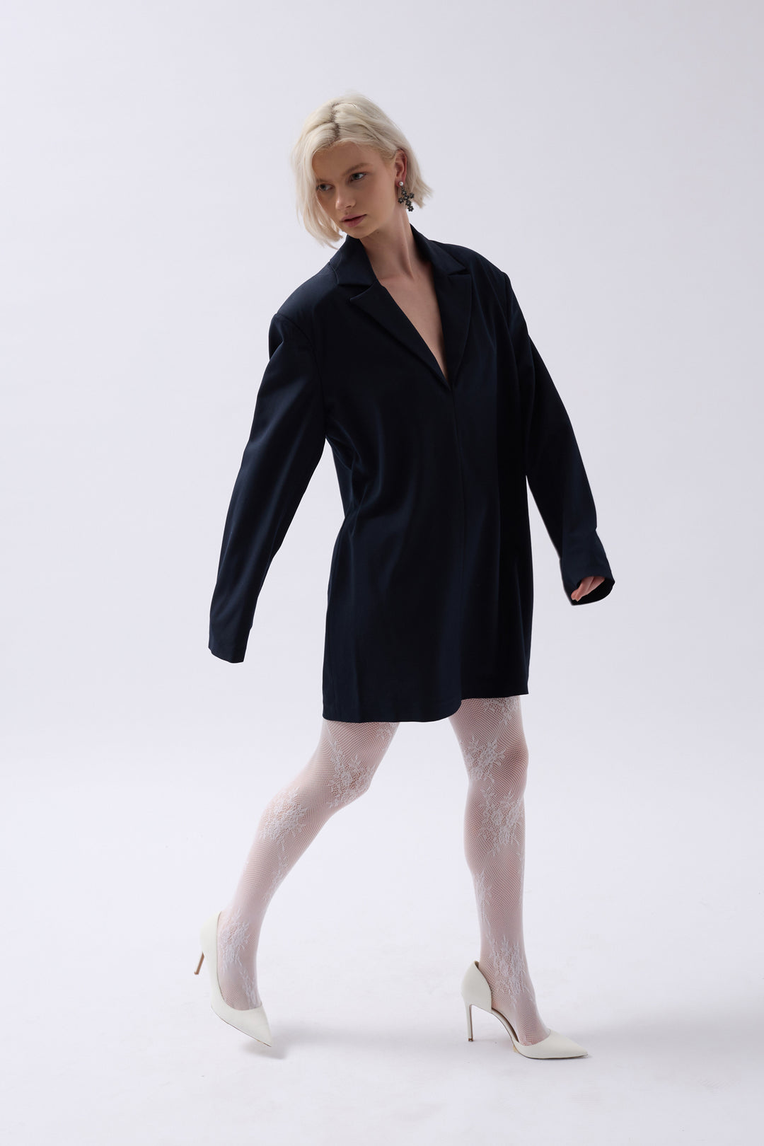 Jacket Collar Navy Blue Mini Dress