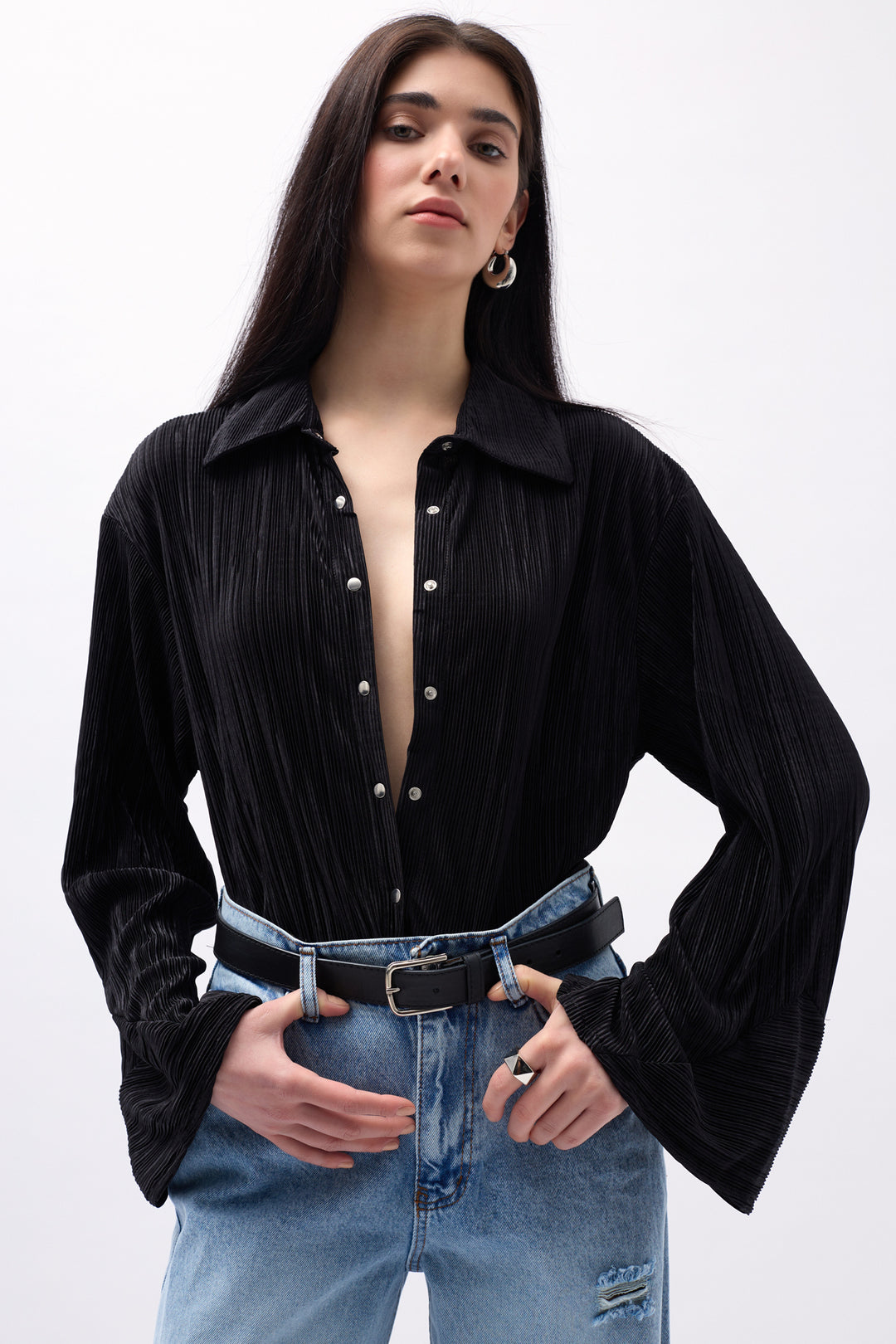 Oversize Textured Black Shirt