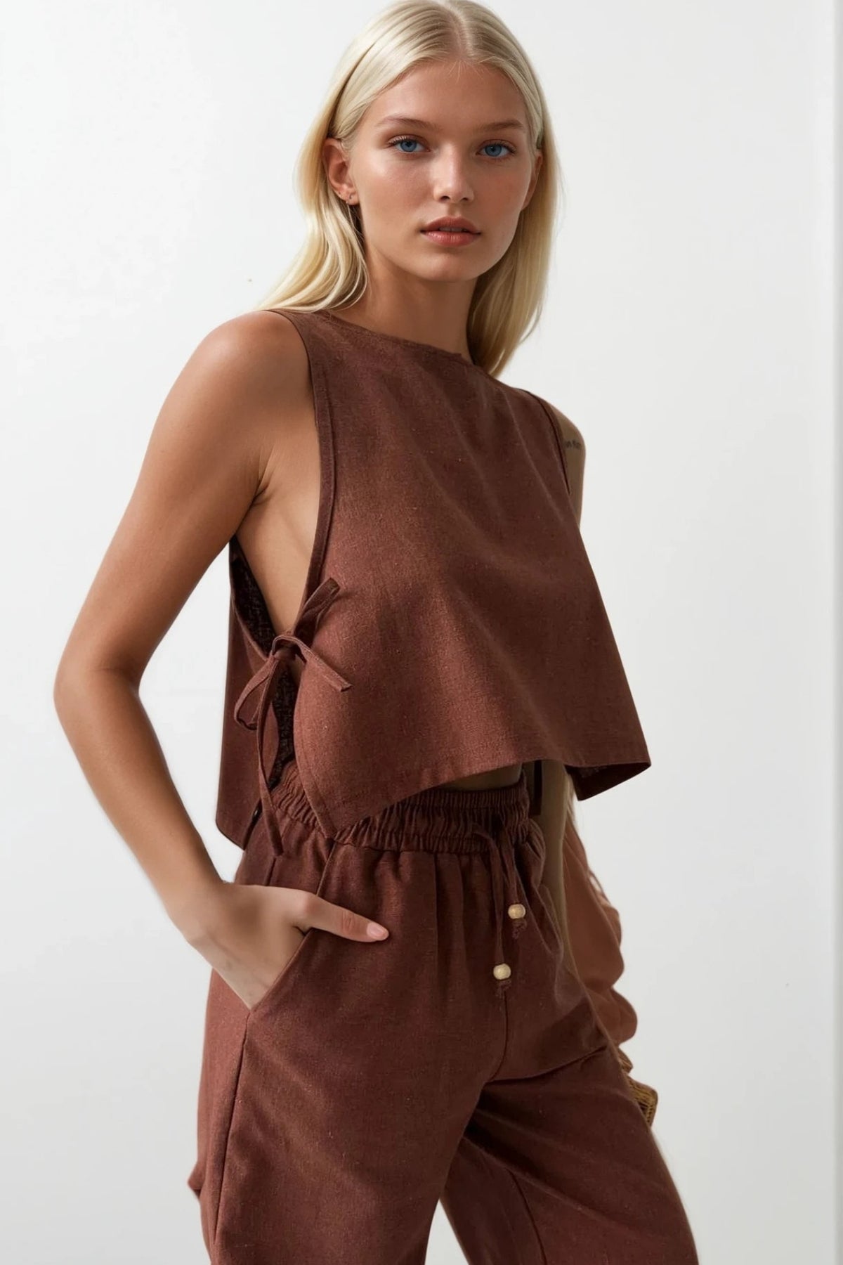 Straight Cut Brown Trousers with Waist Tie