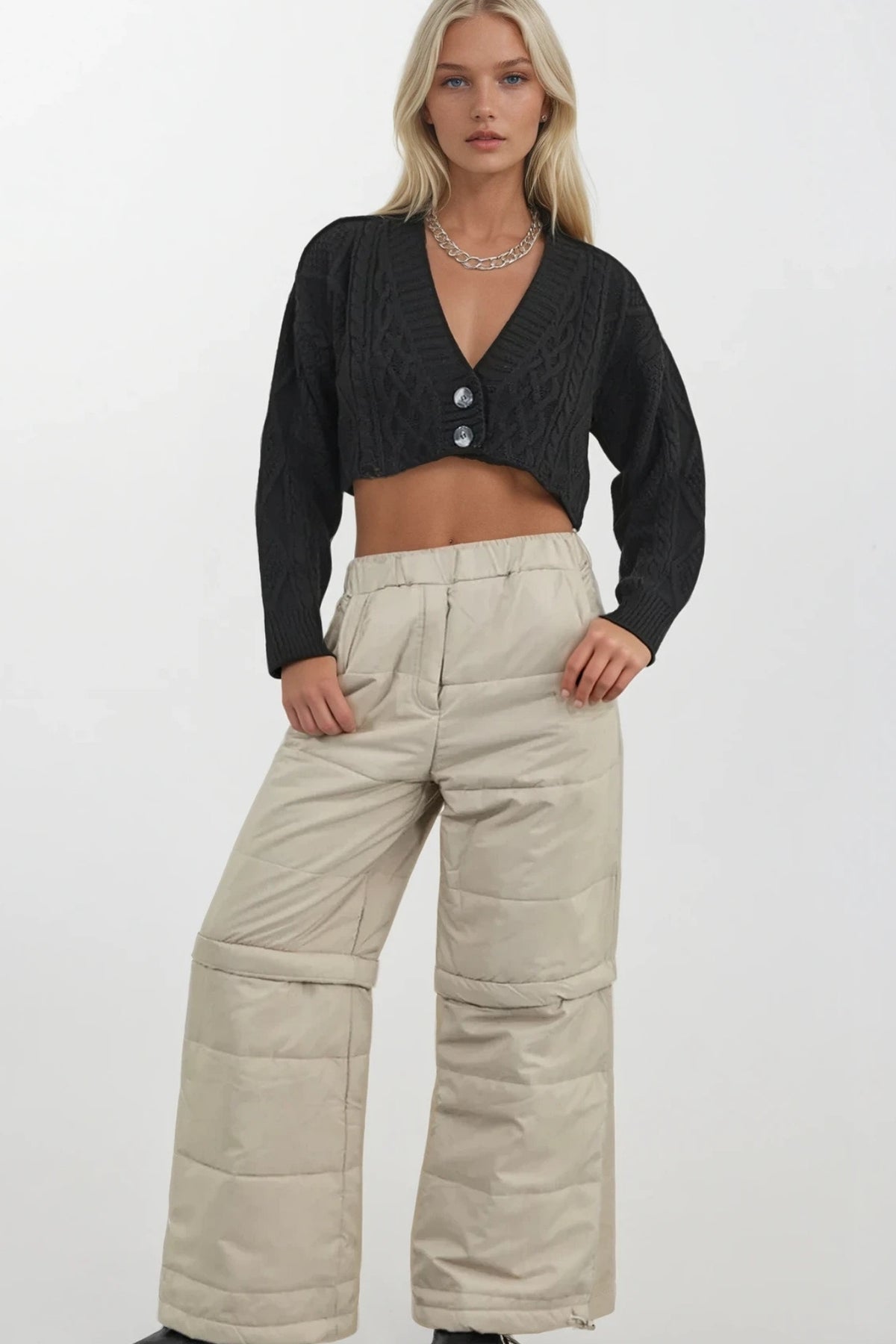 Zipper Detail, Wide Leg, Low Waist, Puffer, Quilted, Trousers