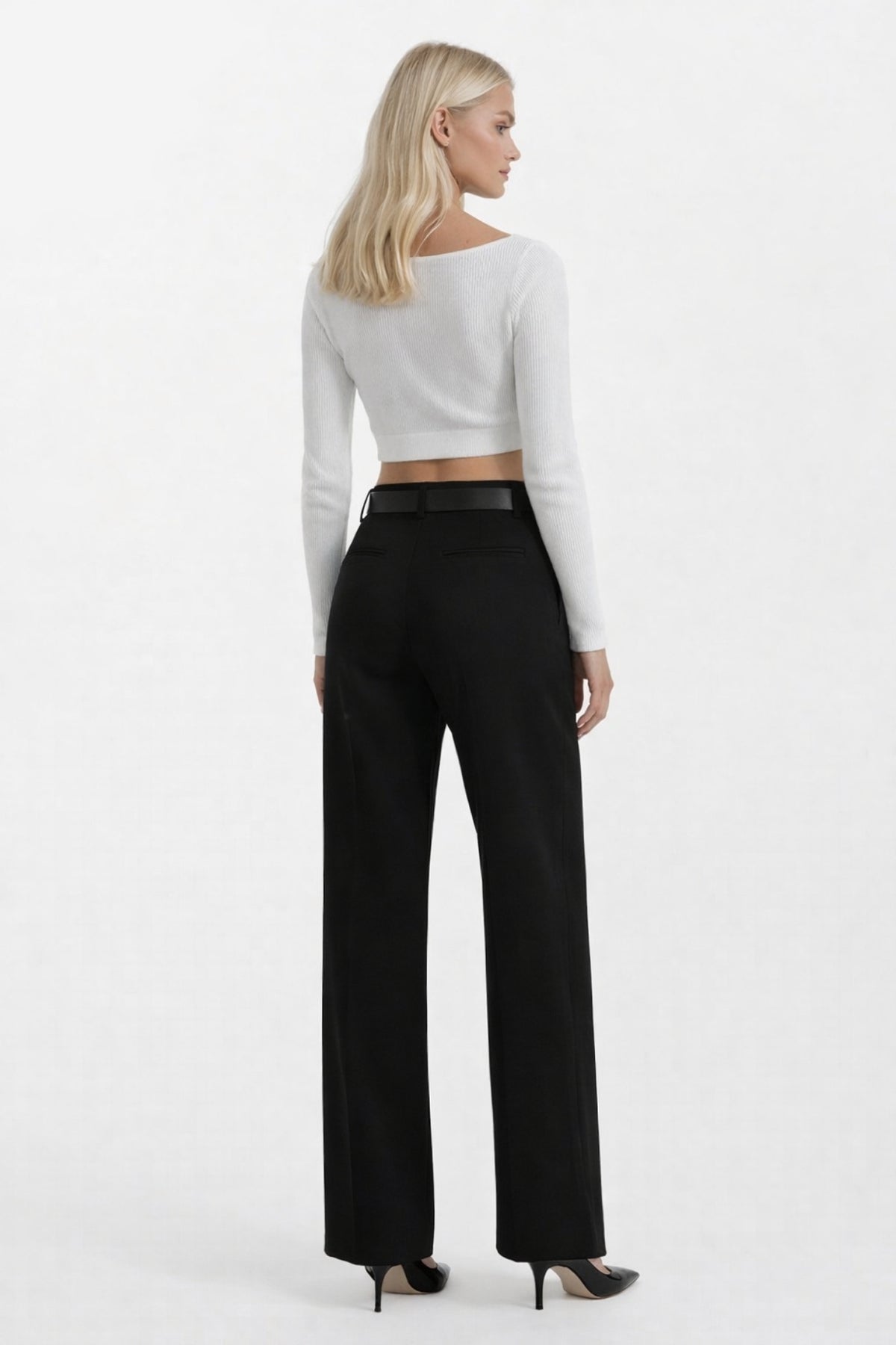 Belted, Pleated and Zippered, Double Pocket, Straight Cut High Waist Trousers