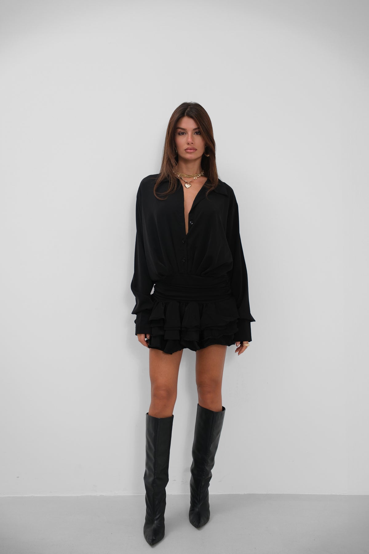 Flounce Detail, Dress, Buttoned, Long Sleeves