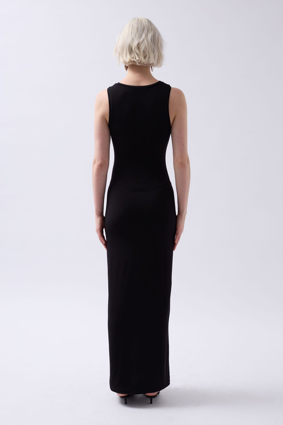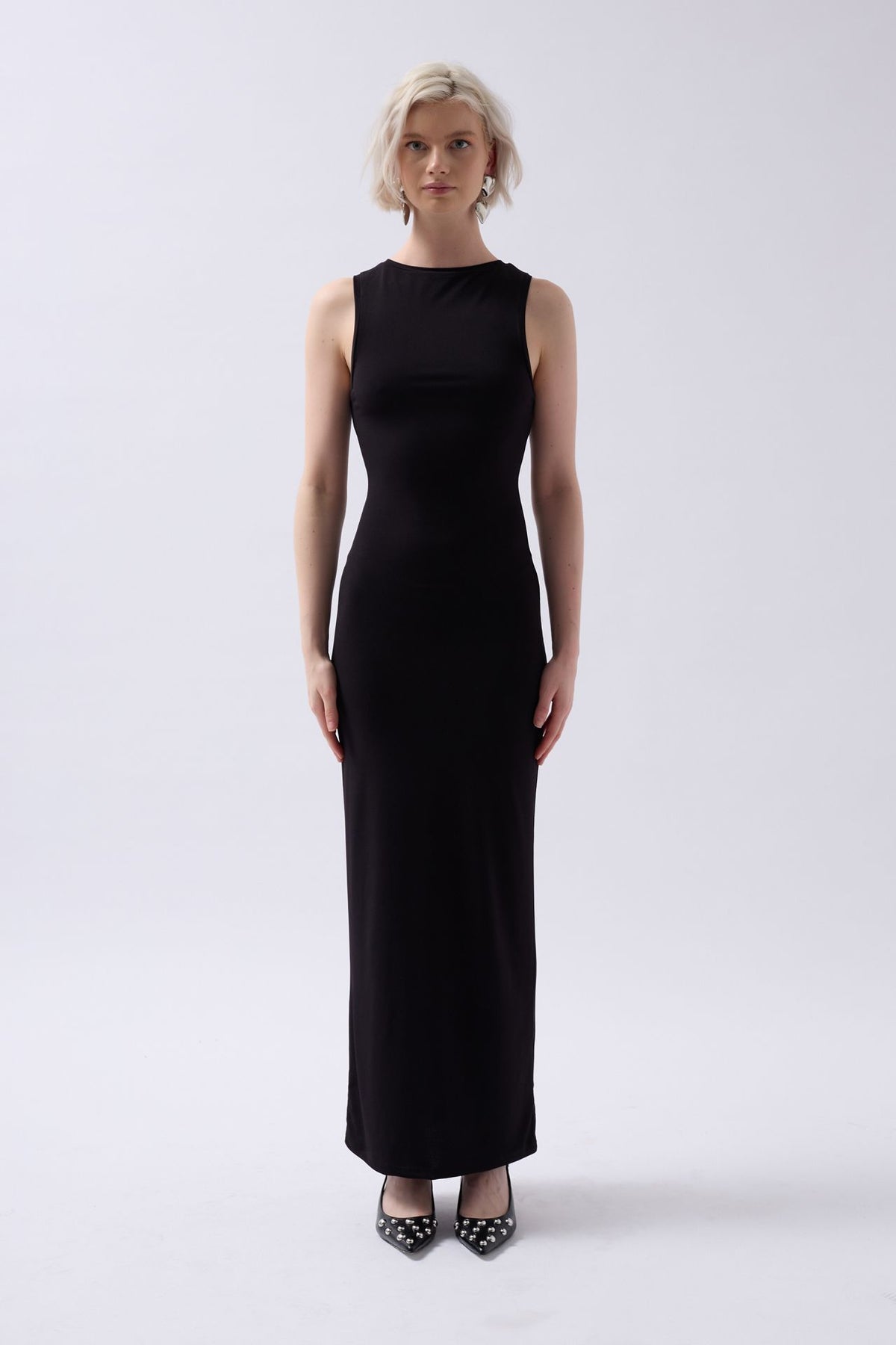 Flexible and Soft Textured Fabric, Sleeveless, Body-hugging, Long Dress