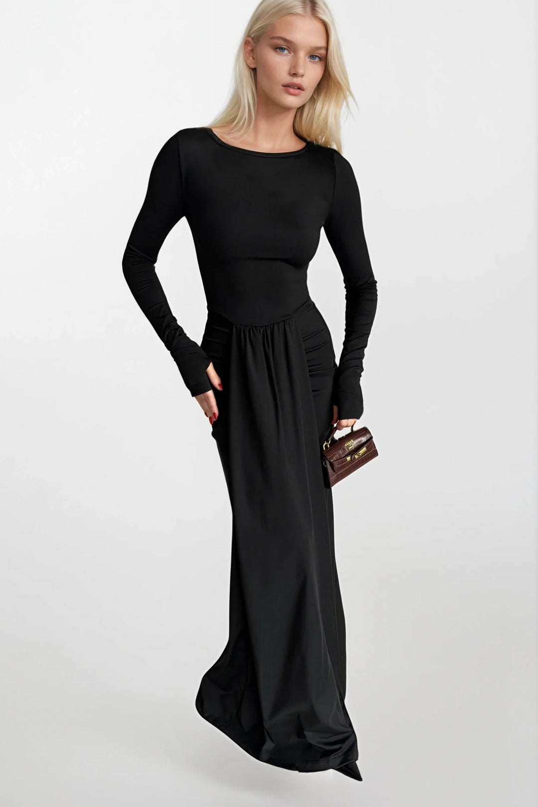 Aksesuar Detay Bel Dekolteli Maxi Siyah Elbise