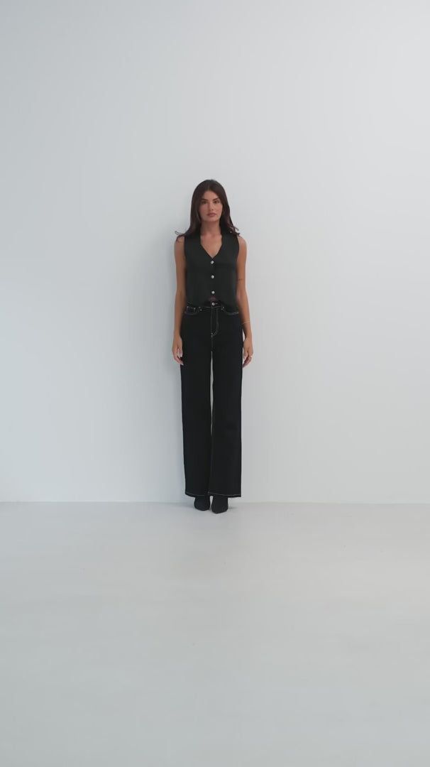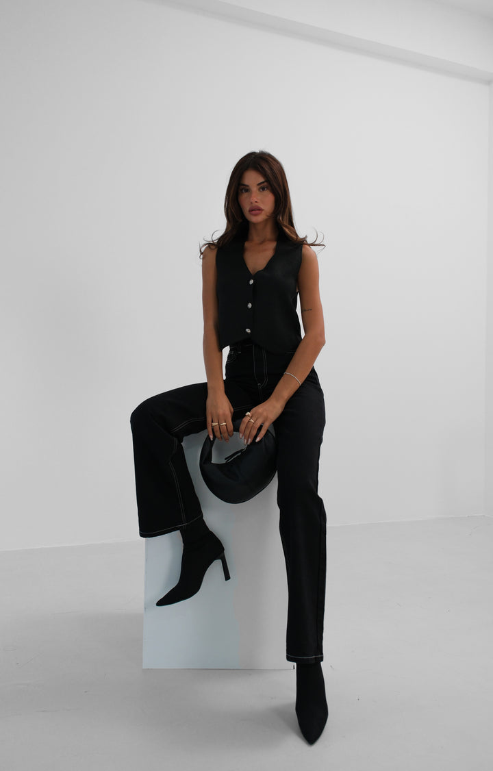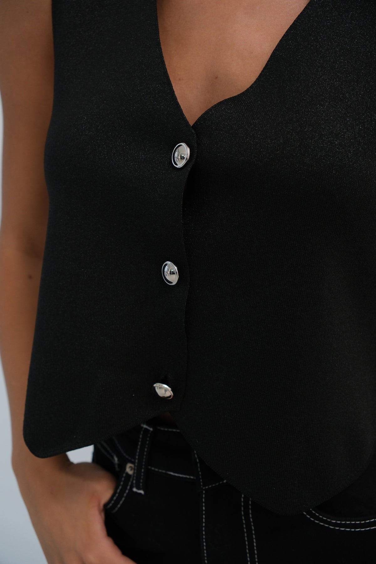 Glittery, Thick Straps, Button Detail, Knit Vest