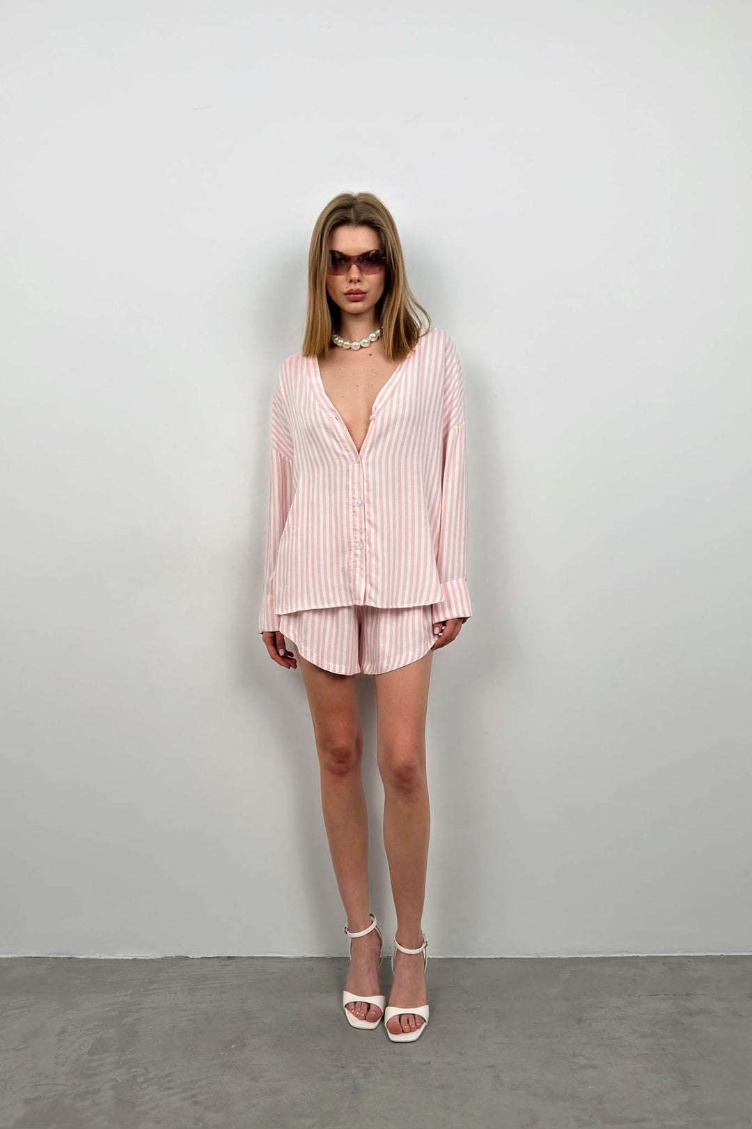 Striped Shirt Pink Shorts Set