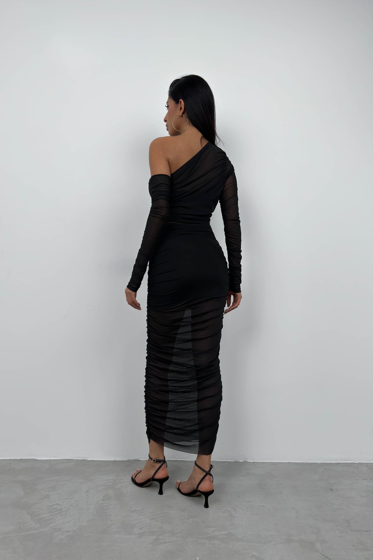 Gathered One Shoulder Black Tulle Suit