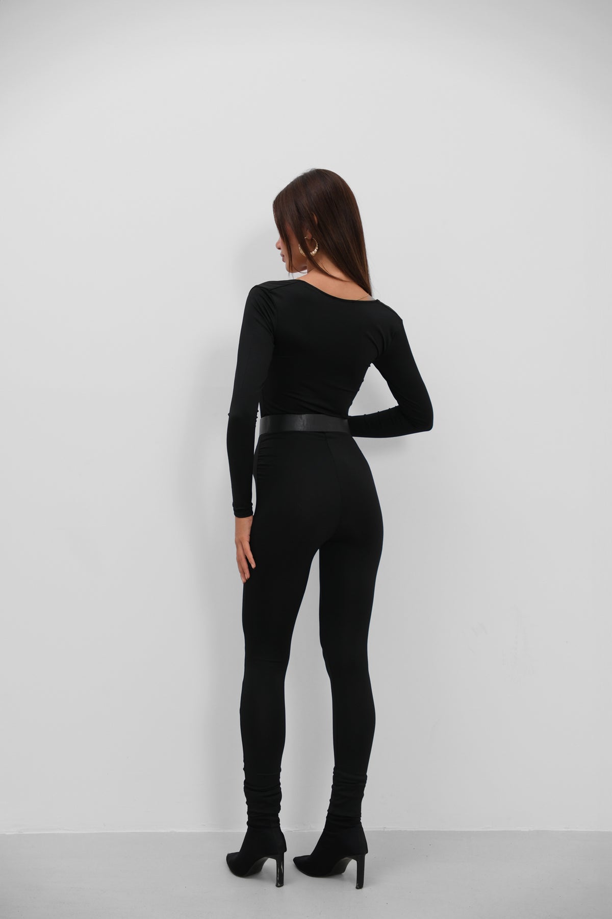 Chest Detail Long Sleeve Globe Black Jumpsuit
