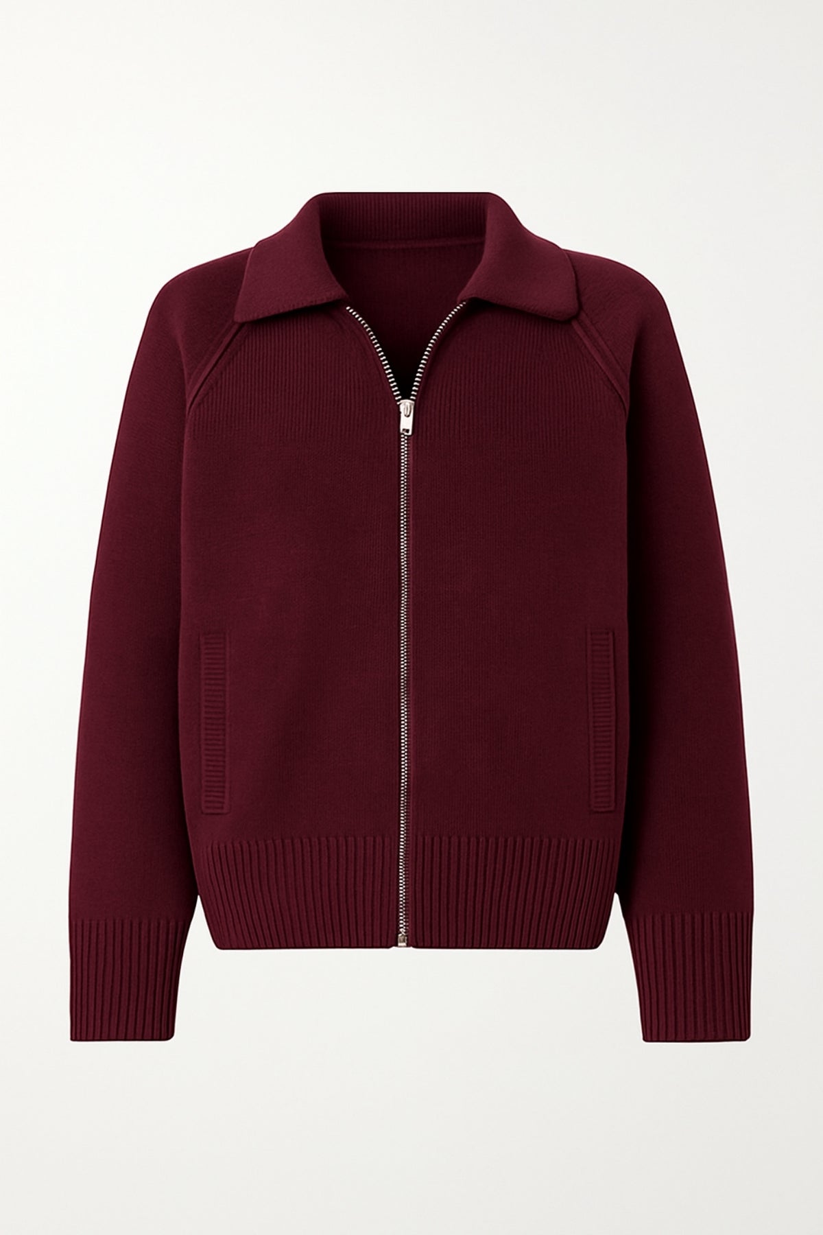 Balıkçı Yaka Fermuar Detay Bordo Kazak