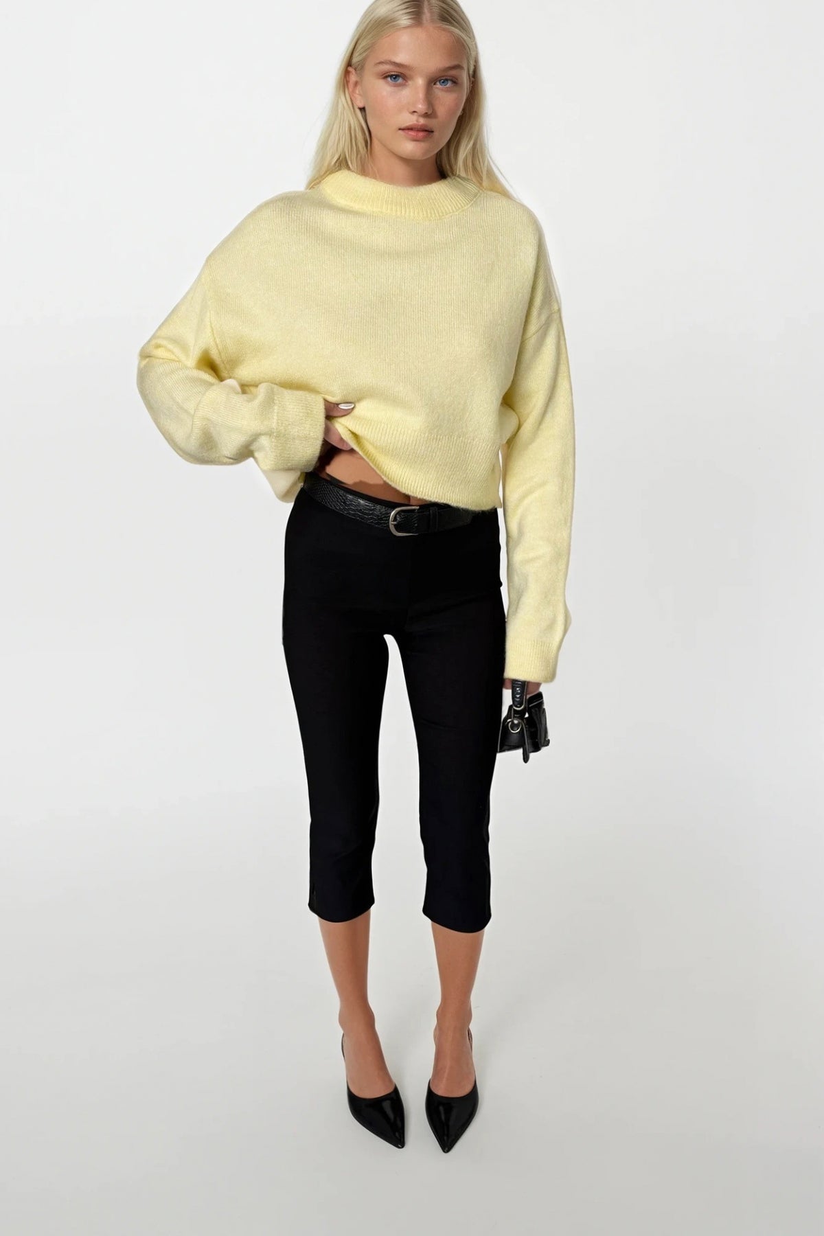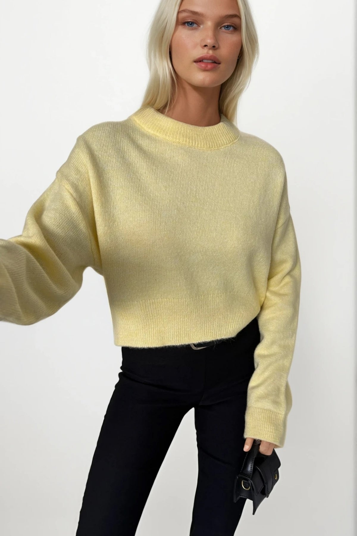 Bisiklet Yaka Crop Sarı Triko Kazak