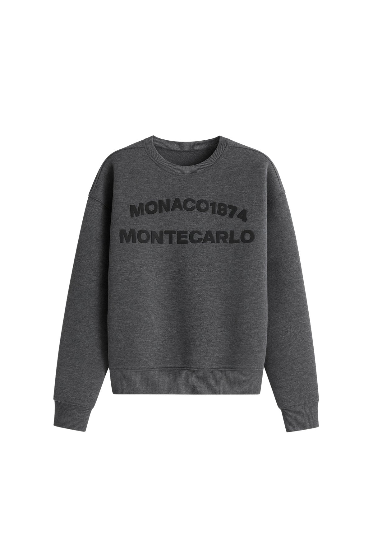 Bisiklet Yaka Kabartma Baskılı Antrasit Sweatshirt