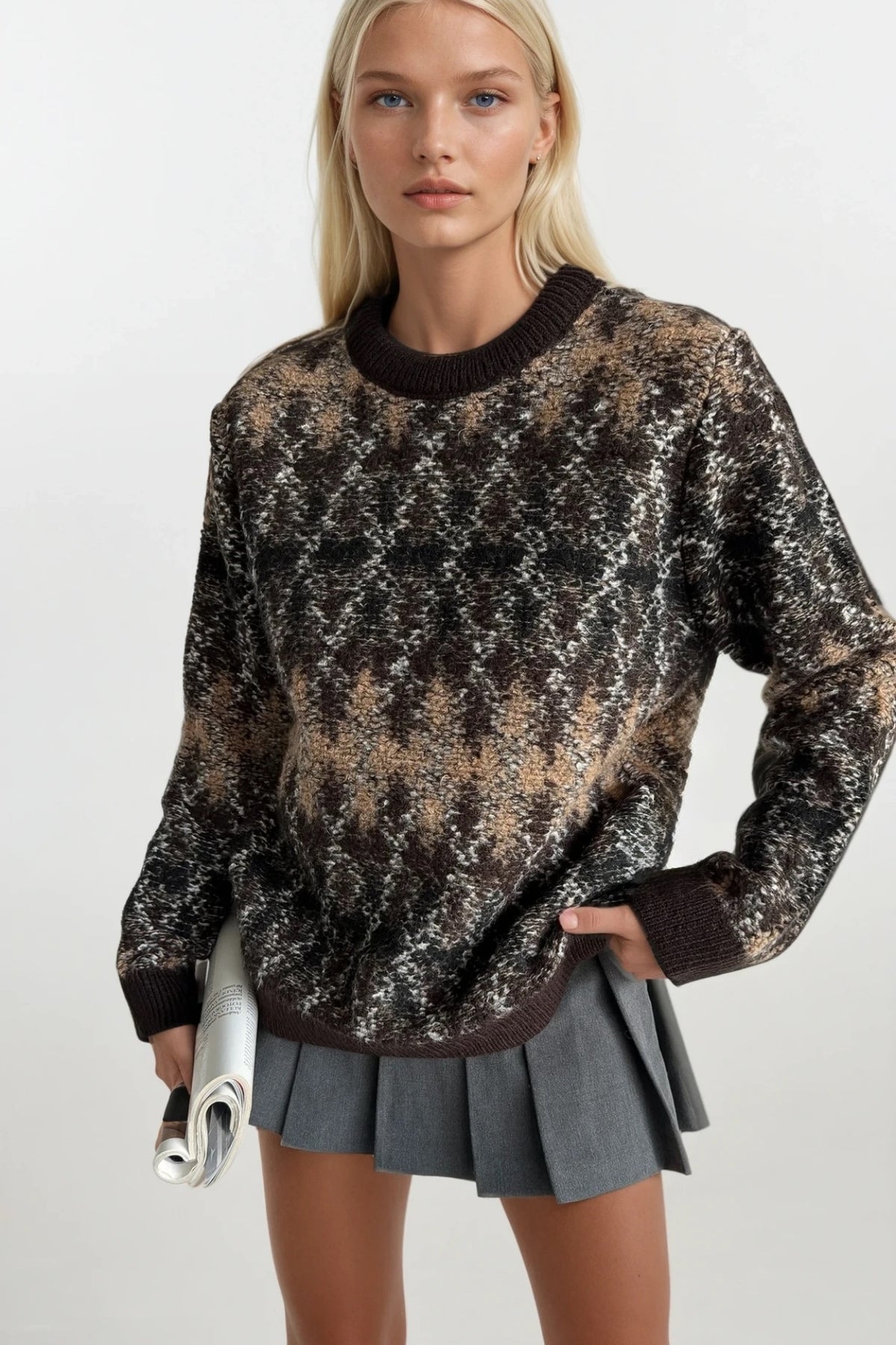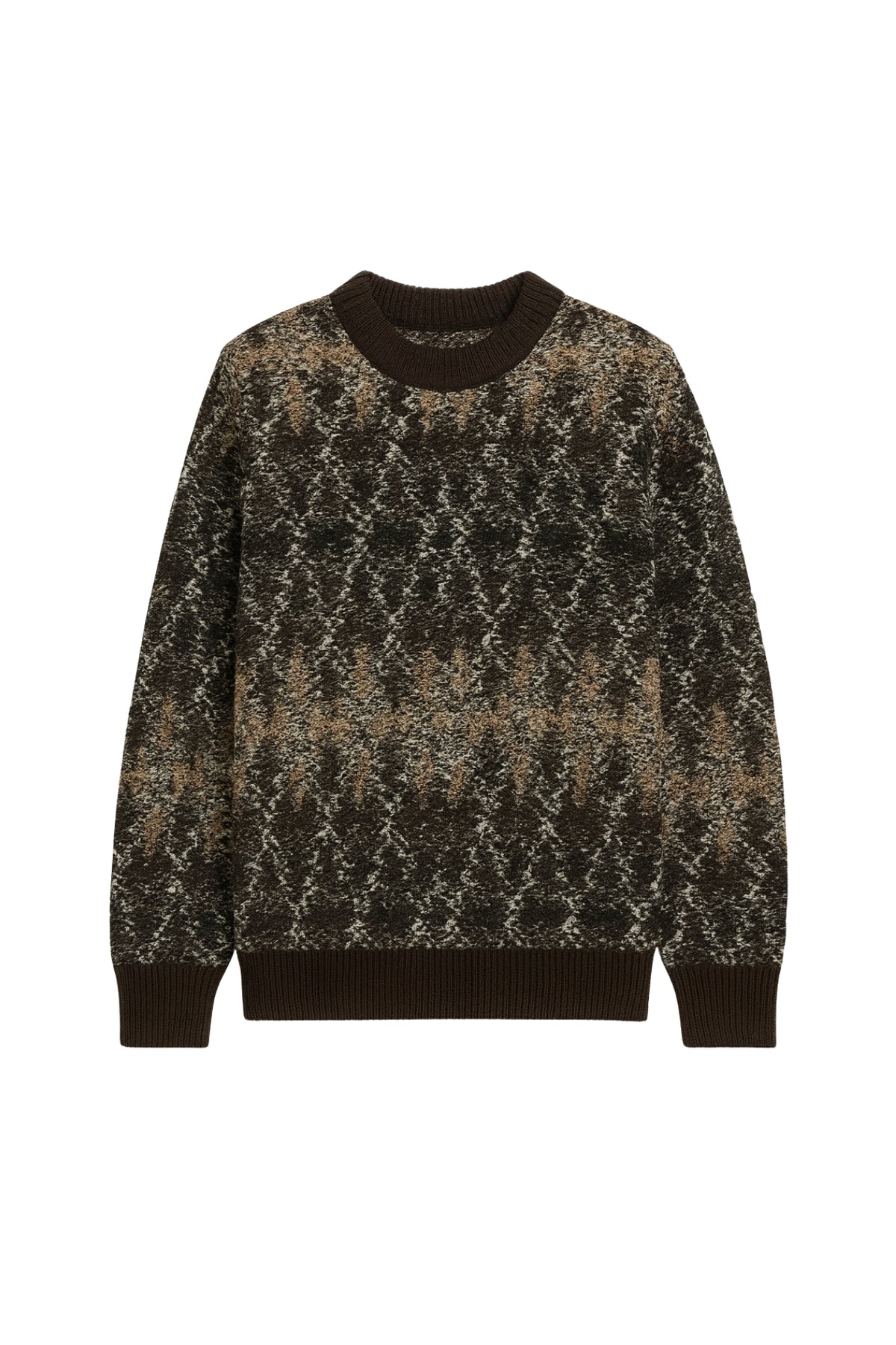 Bisiklet Yaka Kahverengi Desenli Triko Kazak