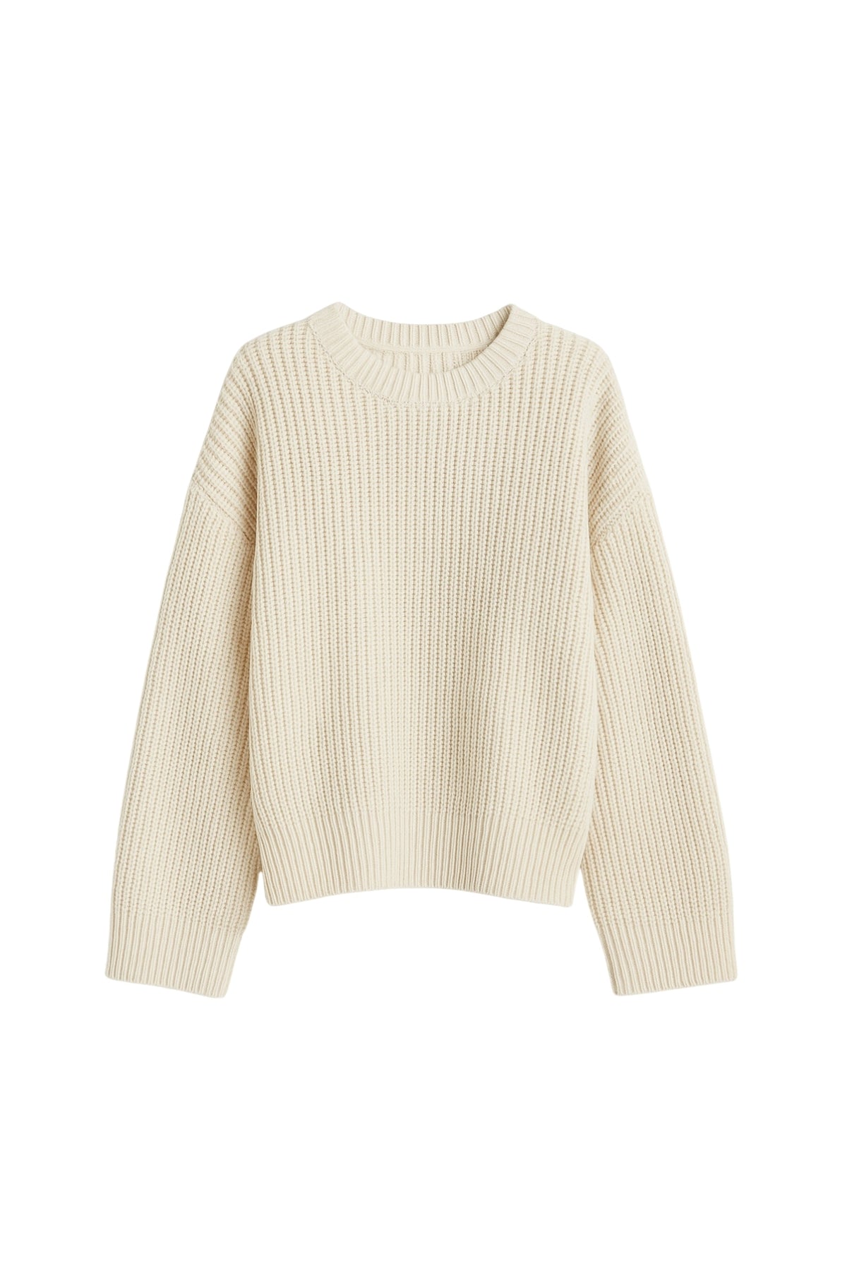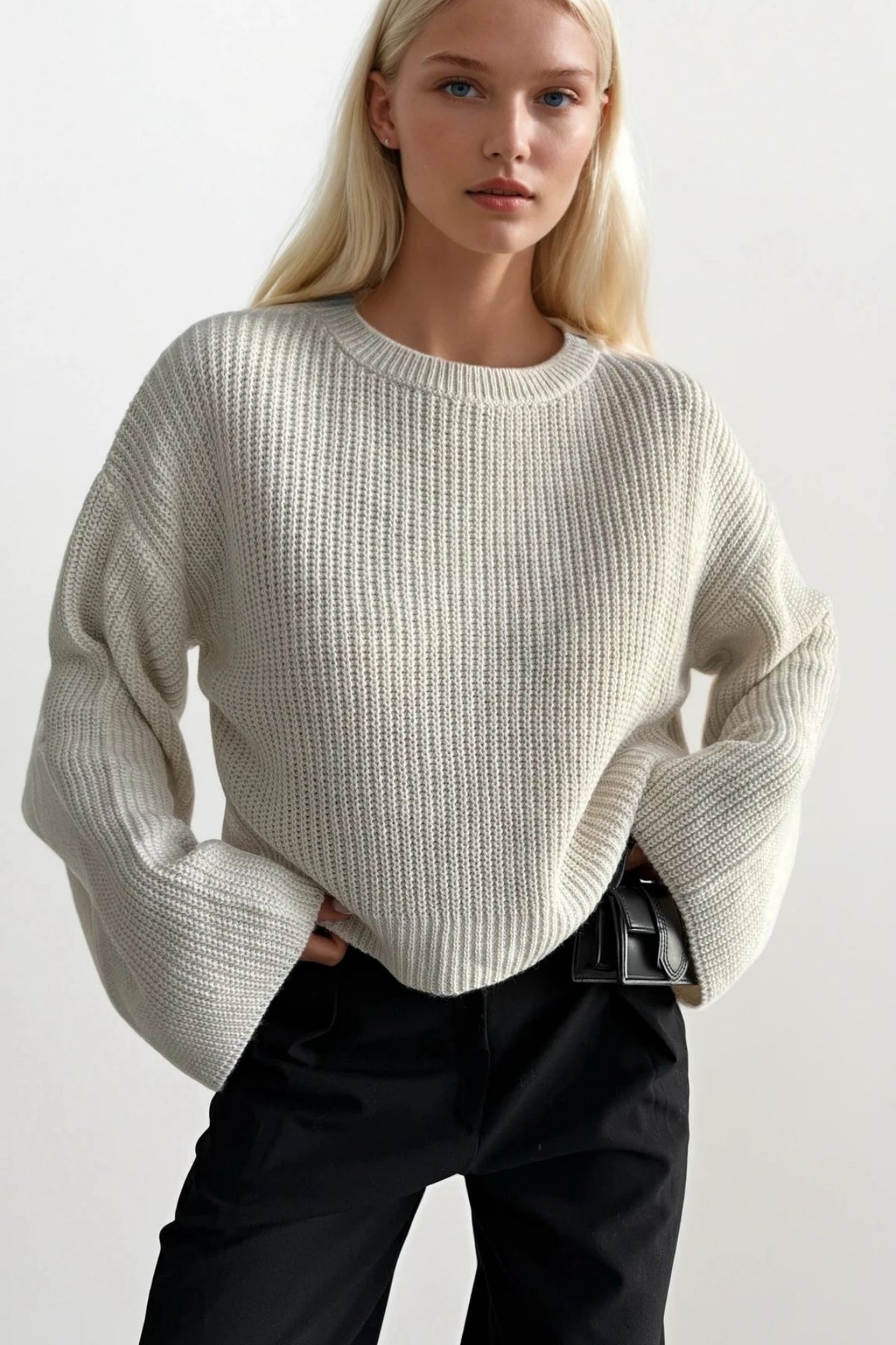 Bisiklet Yaka Örgü Detay Crop Triko Ekru Kazak
