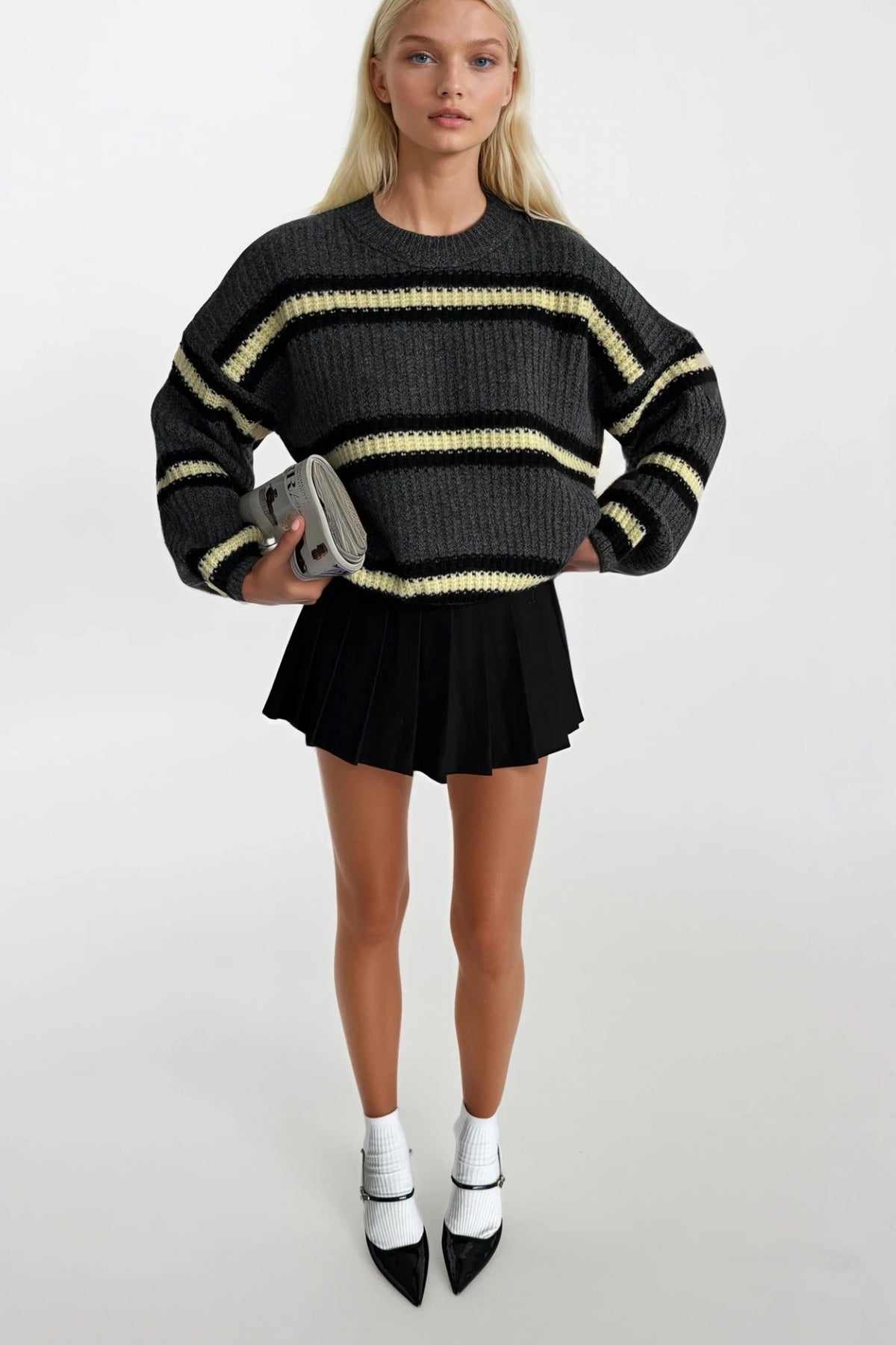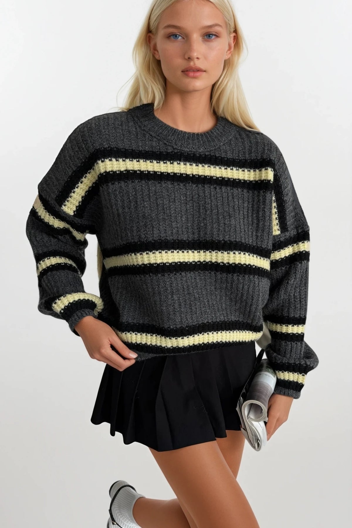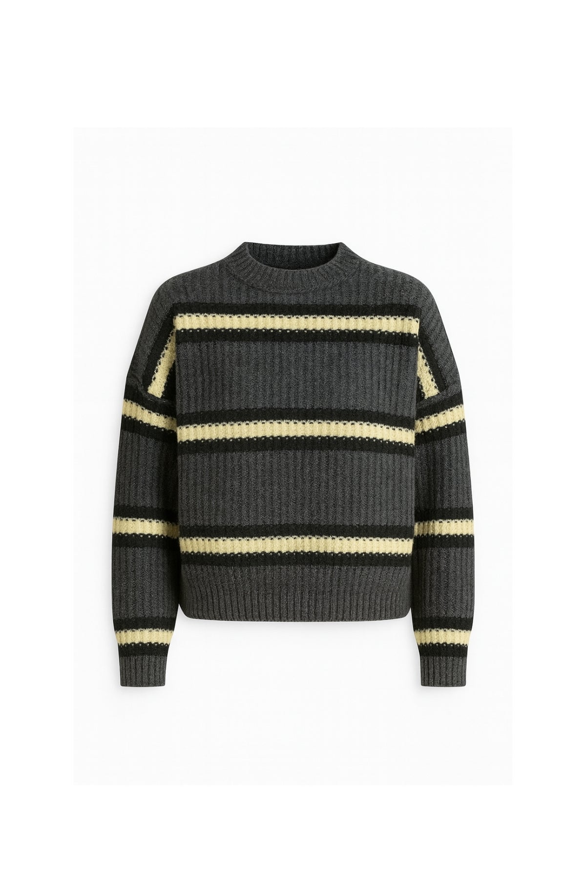 Çizgili Bisiklet Yaka Antrasit Triko Kazak
