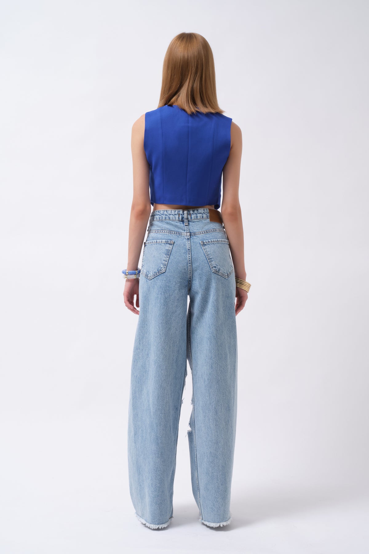 Buttoned Saxe Crop Vest