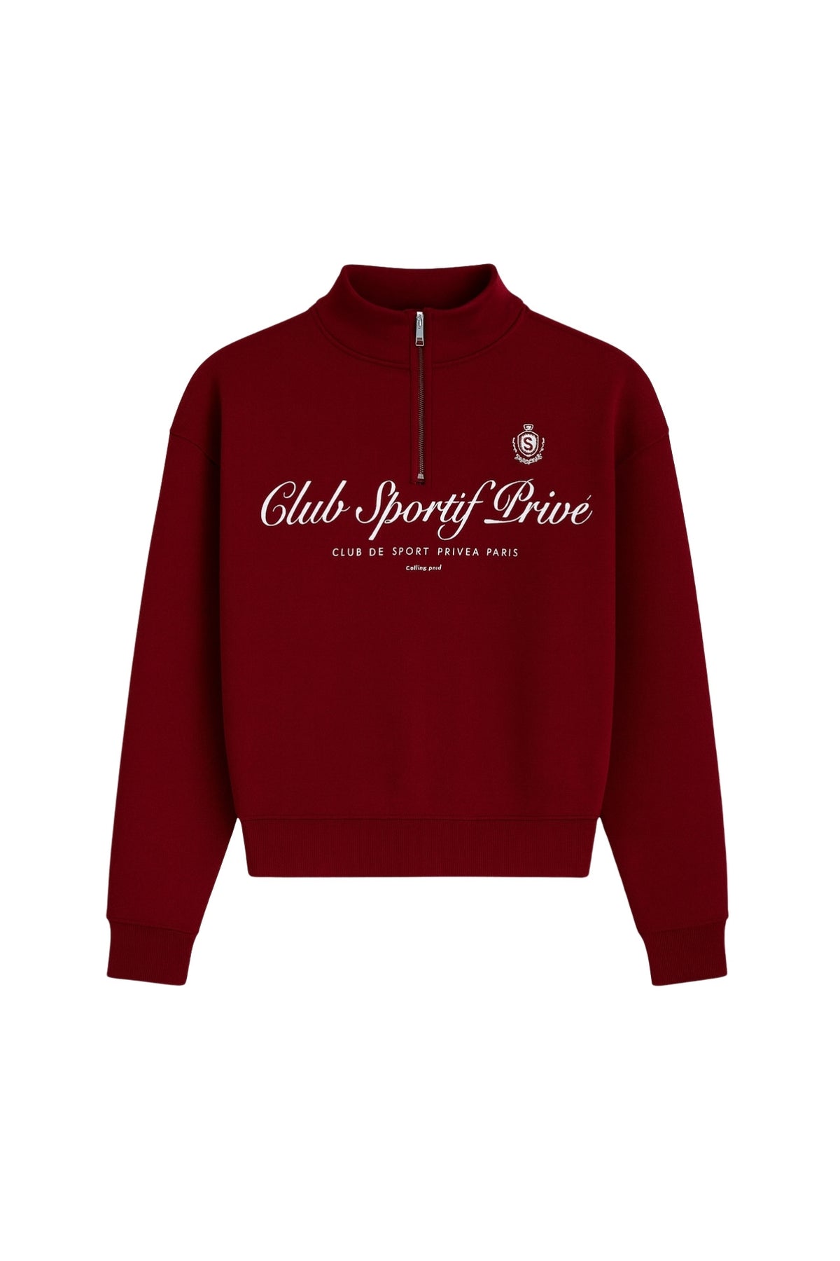 Fermuar Detay Baskılı Bordo Sweatshirt
