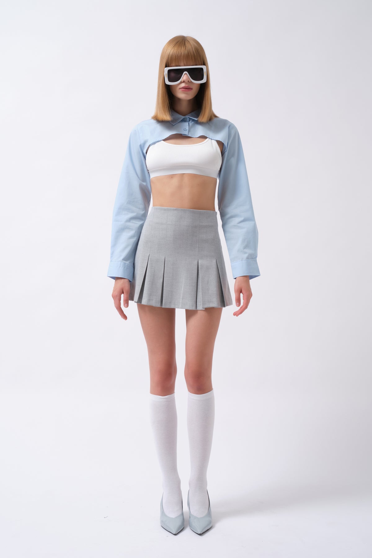 Oval Cut, Shirt Collar, Long Sleeve, Ultra Crop Shirt