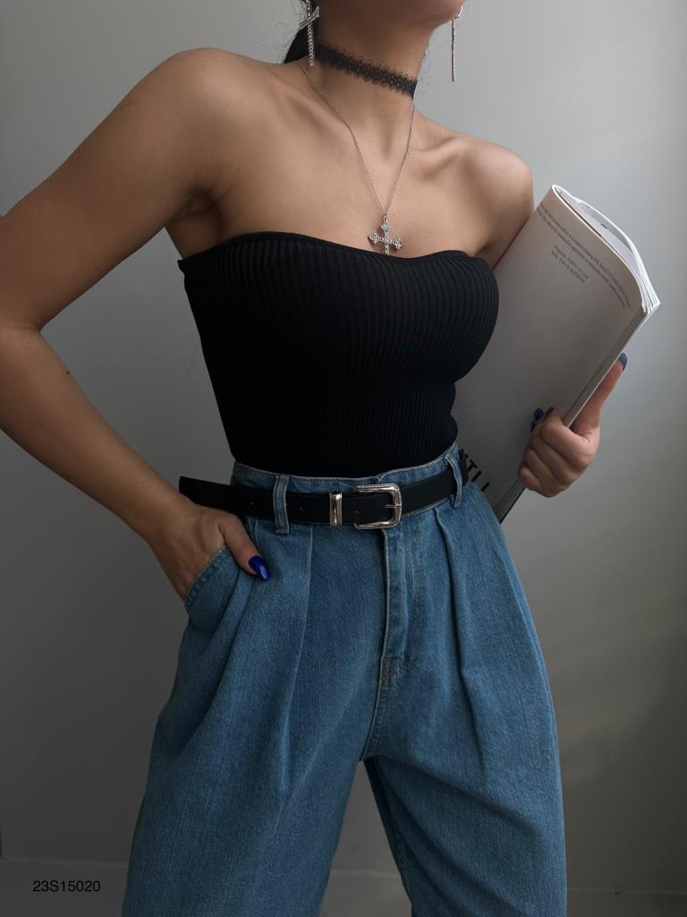 Sweetheart Neck, Strapless, Knitted Blouse, Open Shoulders, Straight Neck Bustier