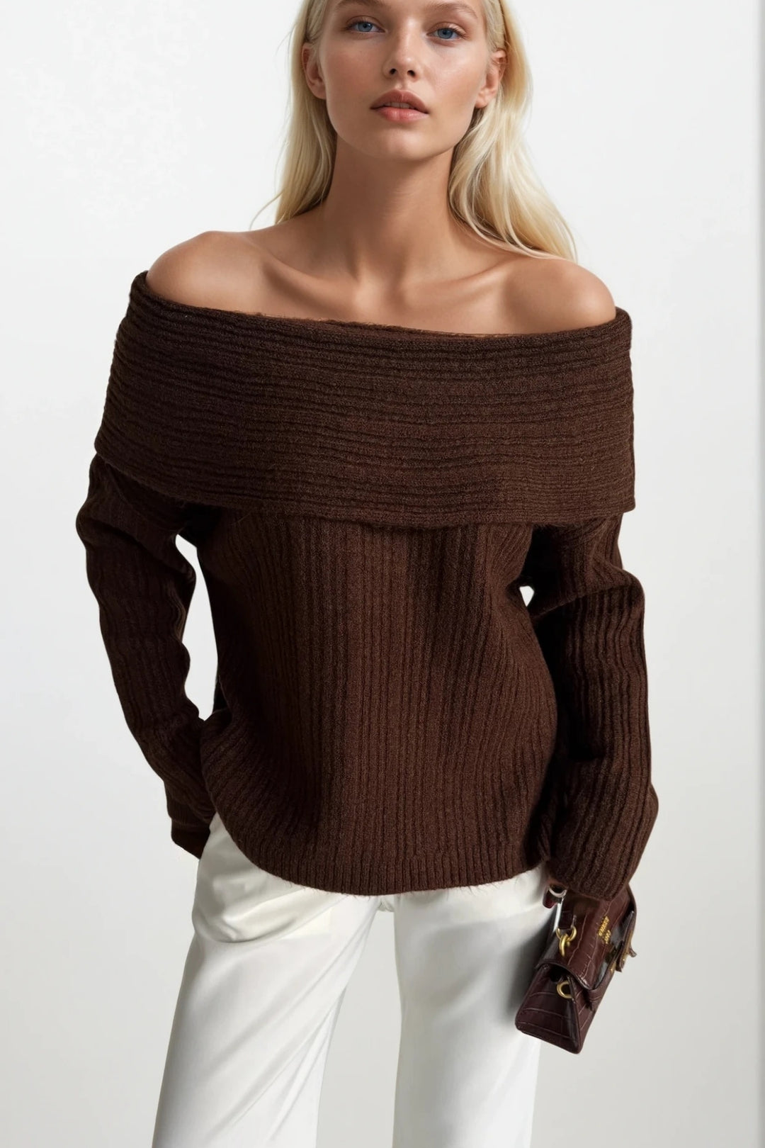 Atkı Detay Dokulu Kahverengi Triko Kazak İkili Takım