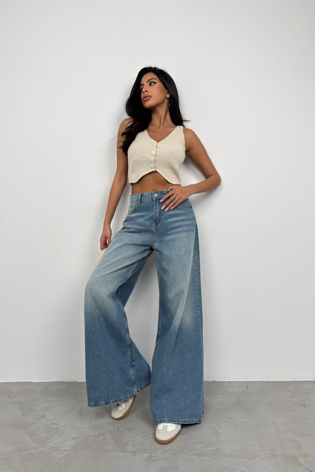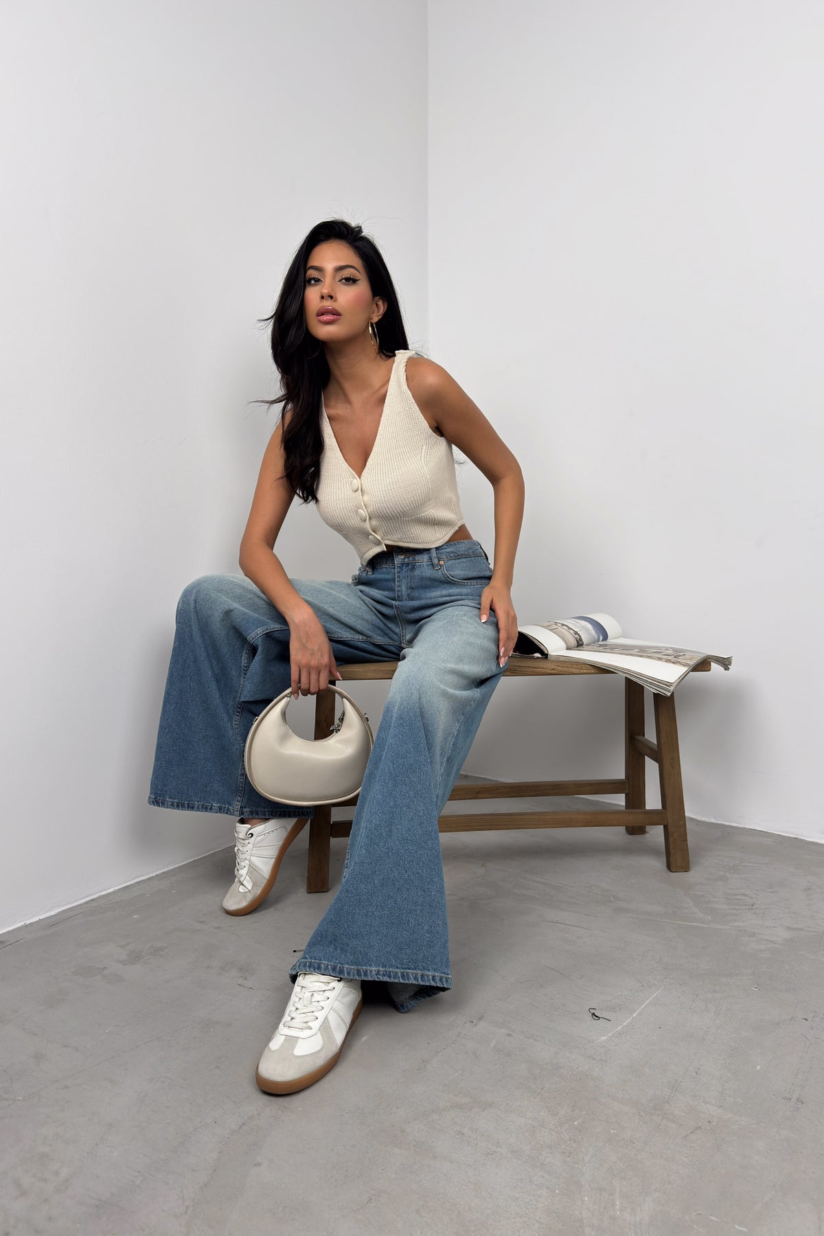 Button Detailed, Oval Finished, Crop, Knitwear Vest