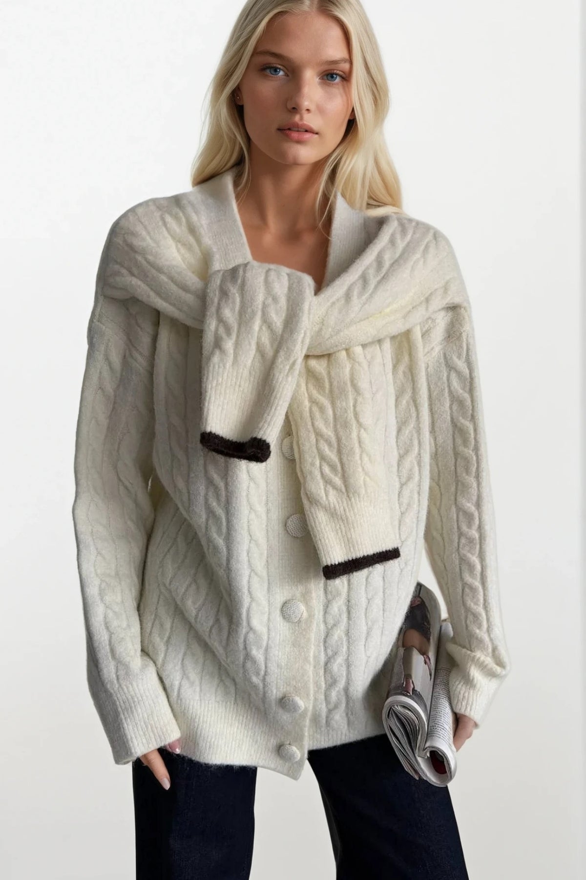 Aksesuar Detay Örgülü Ekru Triko Hırka