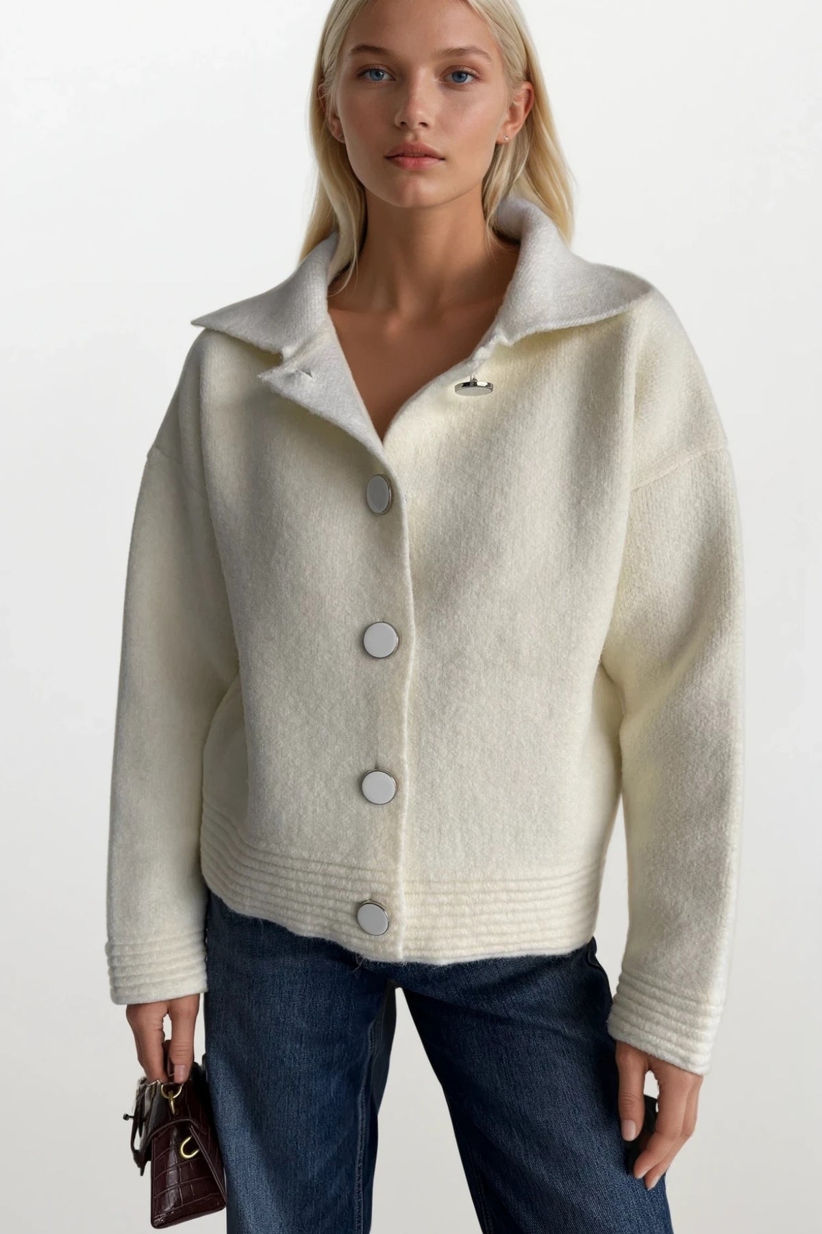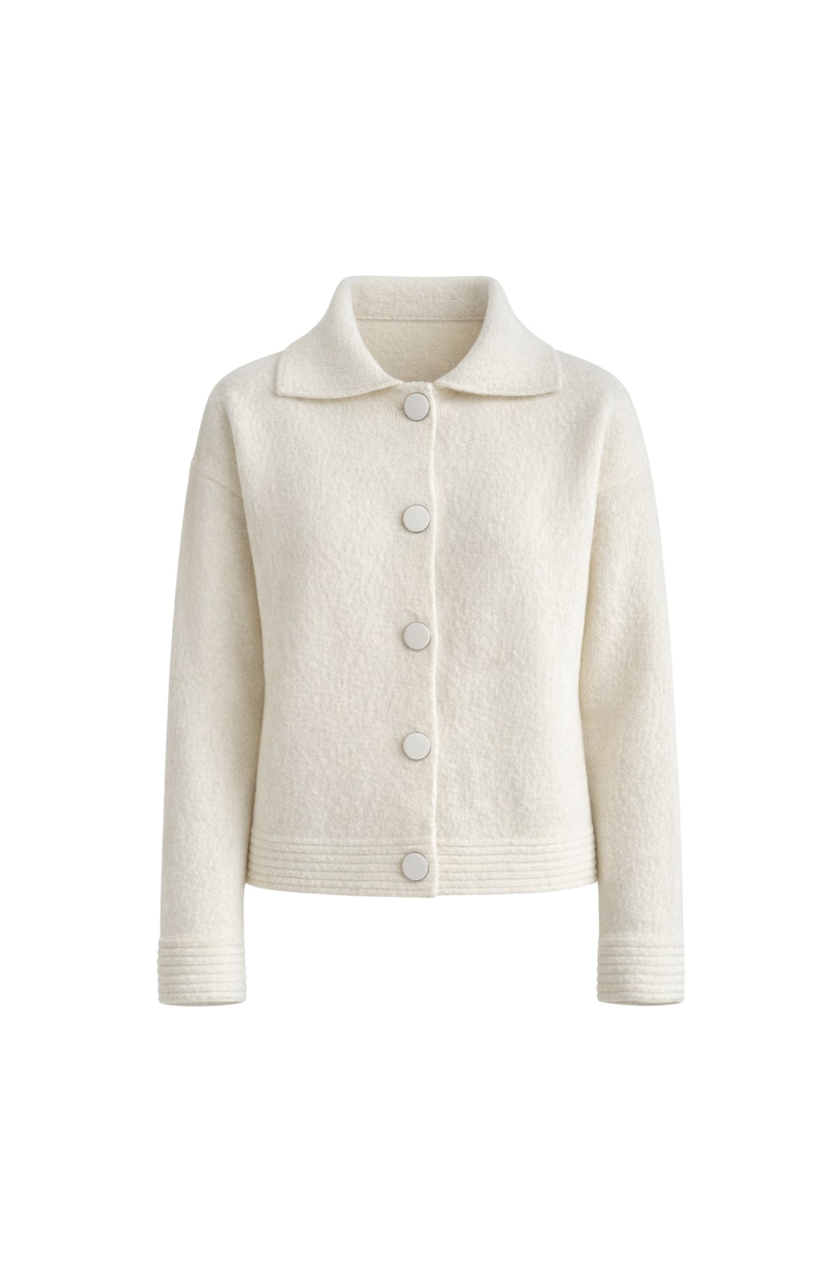 Polo Yaka Düğme Detay Ekru Triko Hırka