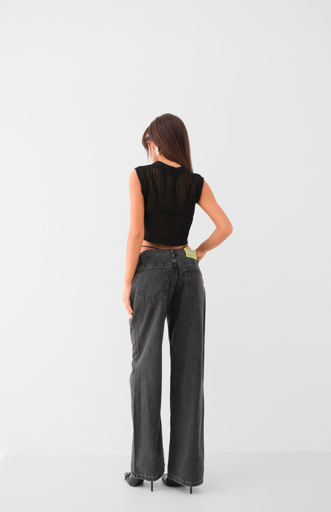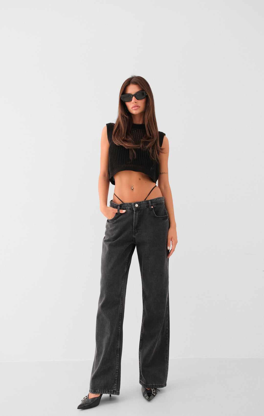 Openwork Knitwear, Thick Straps, Zero Collar, Crop, Sweater