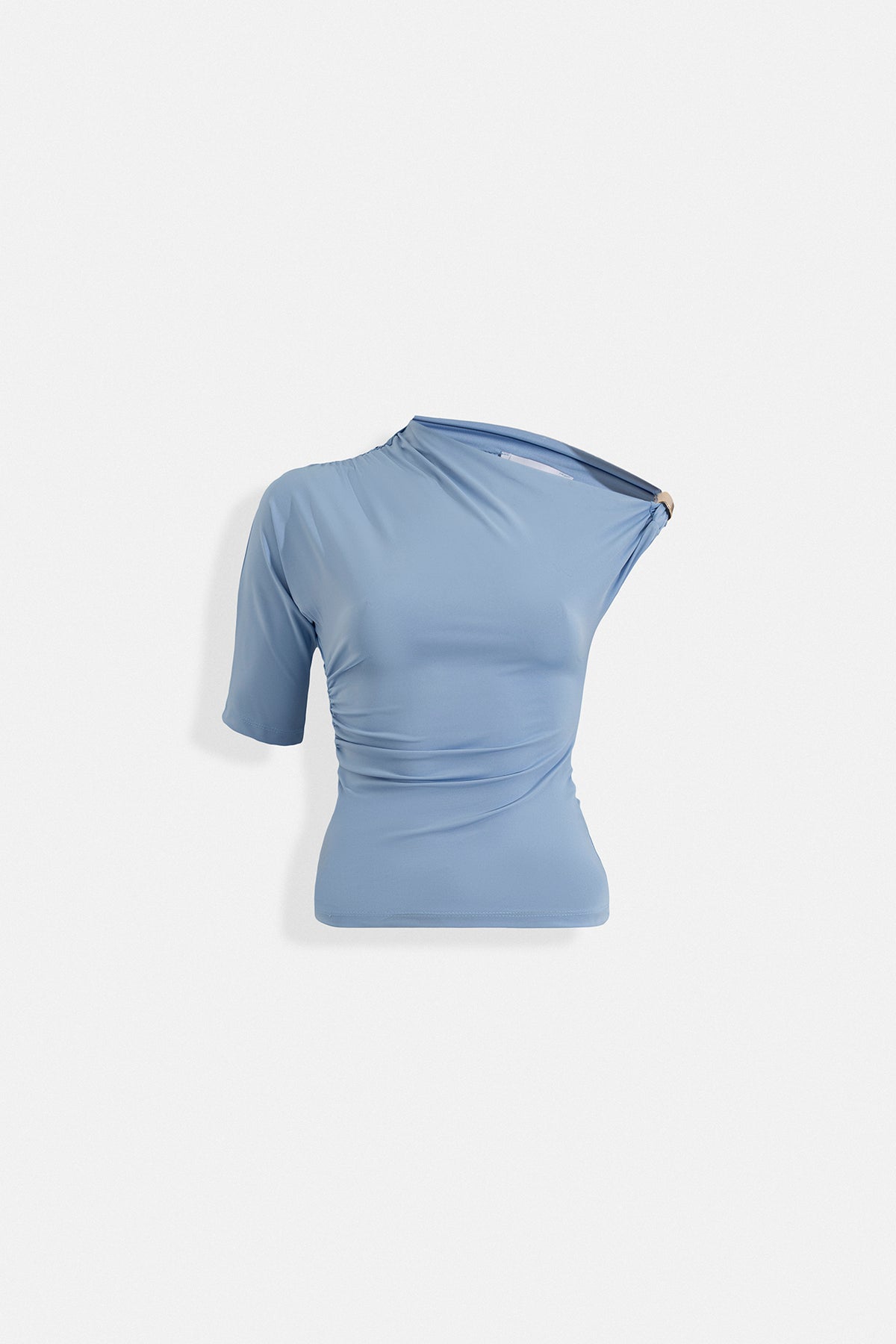 Asymmetrical Cut, Accessory Detailed, Slim Fit, Lycra and Flexible Fabric Blouse