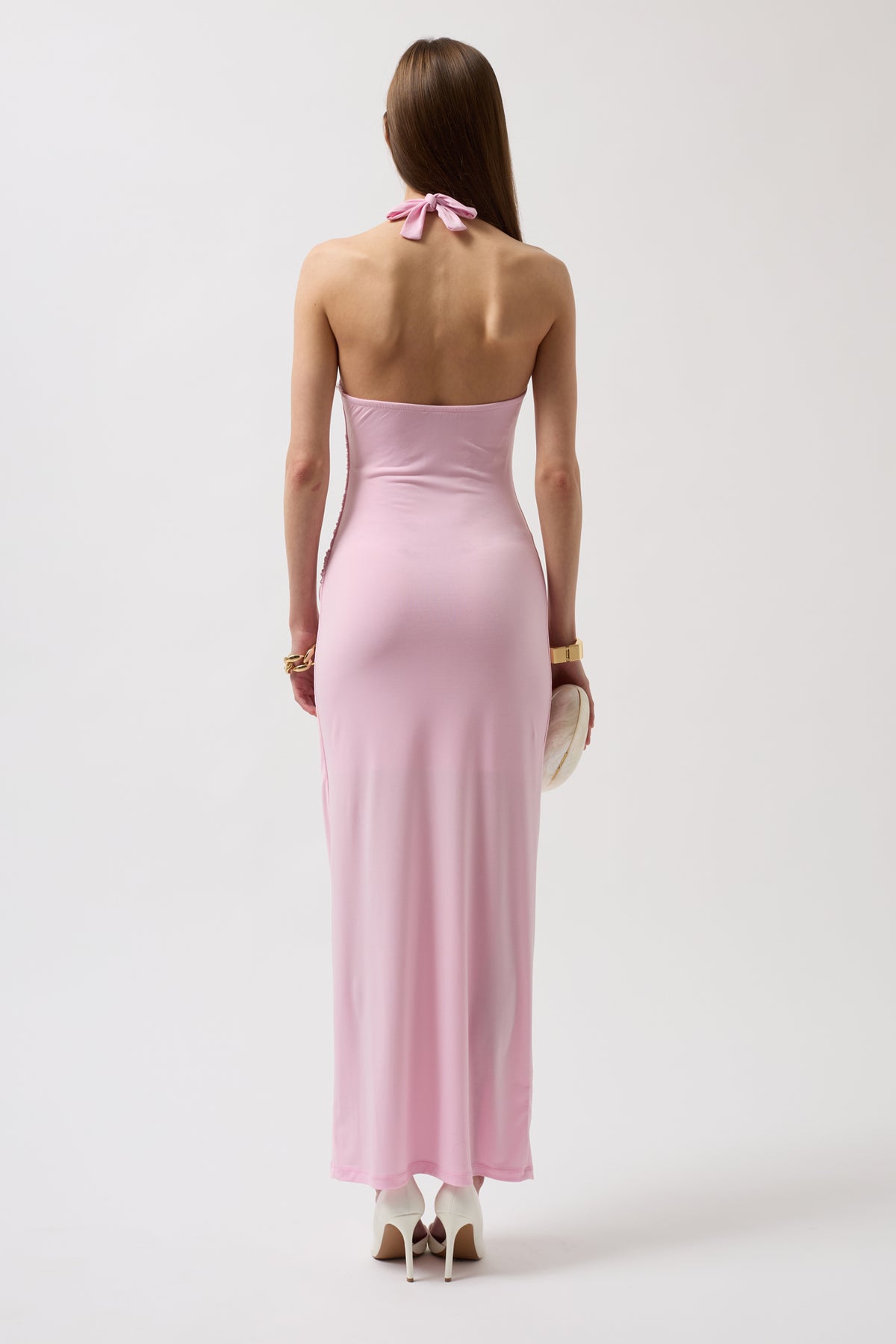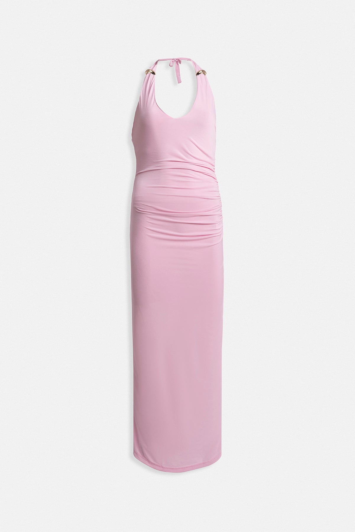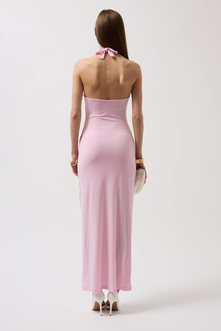 Adjustable Accessory Detailed, Half Lined, Neck Tie, Lycra and Flexible Fabric Long Dress