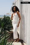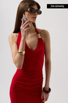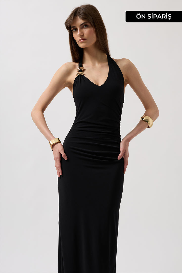 Adjustable Accessory Detailed, Half Lined, Neck Tie, Lycra and Flexible Fabric Long Dress