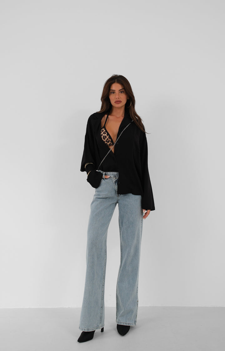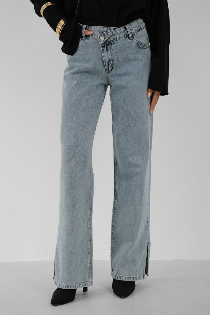 Asymmetrical Belt, Slit Leg Detailed Jeans