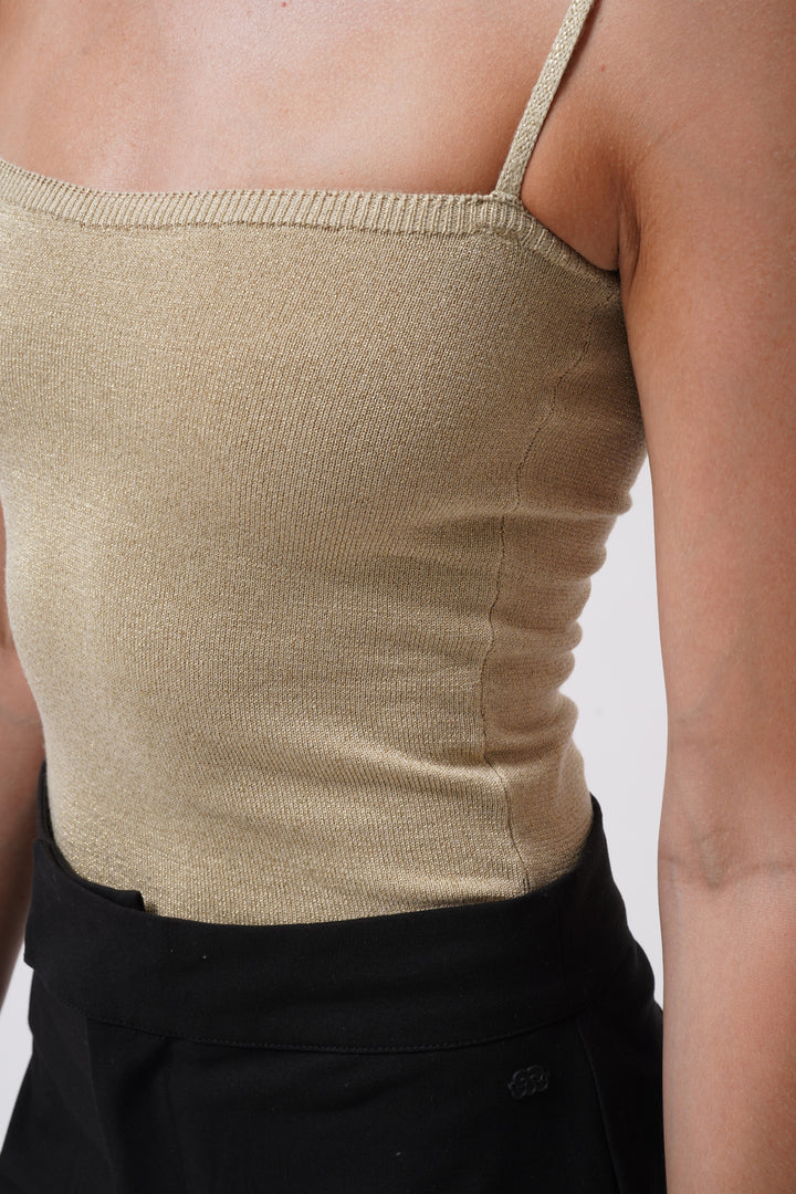 Thin Straps, Square Neck, Strapless, Body-Clinging Fabric, Lycra Fabric, Shiny Knitwear Blouse