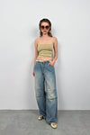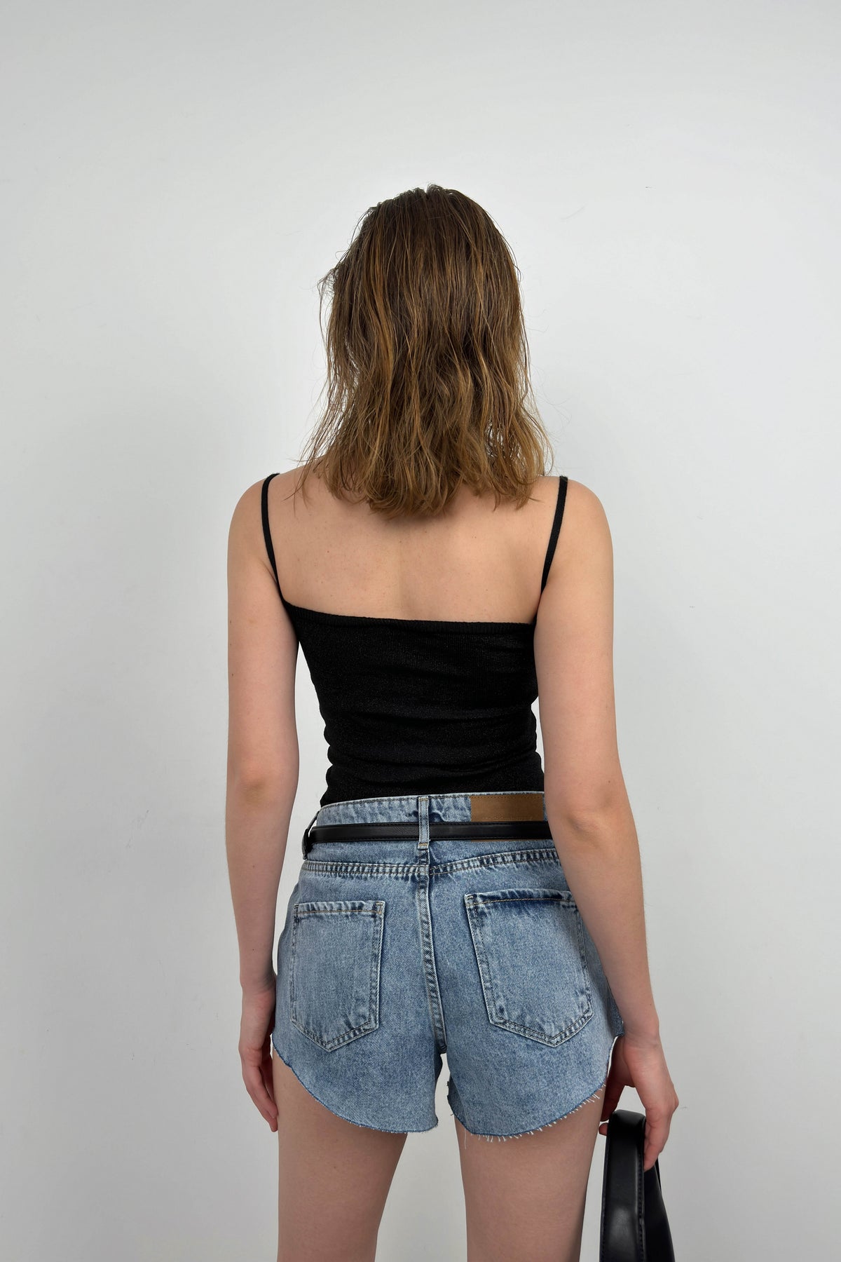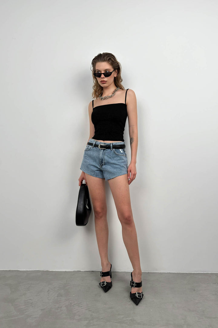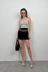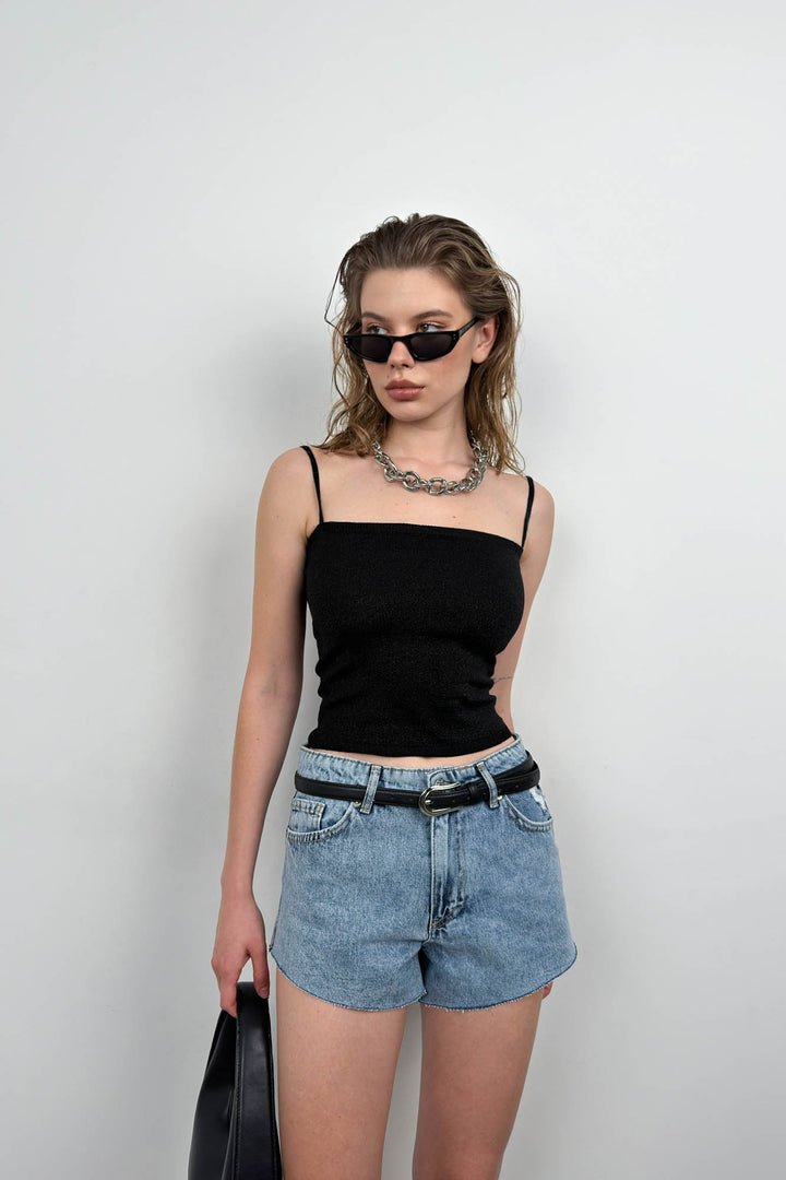 Thin Straps, Square Neck, Strapless, Body-Clinging Fabric, Lycra Fabric, Shiny Knitwear Blouse