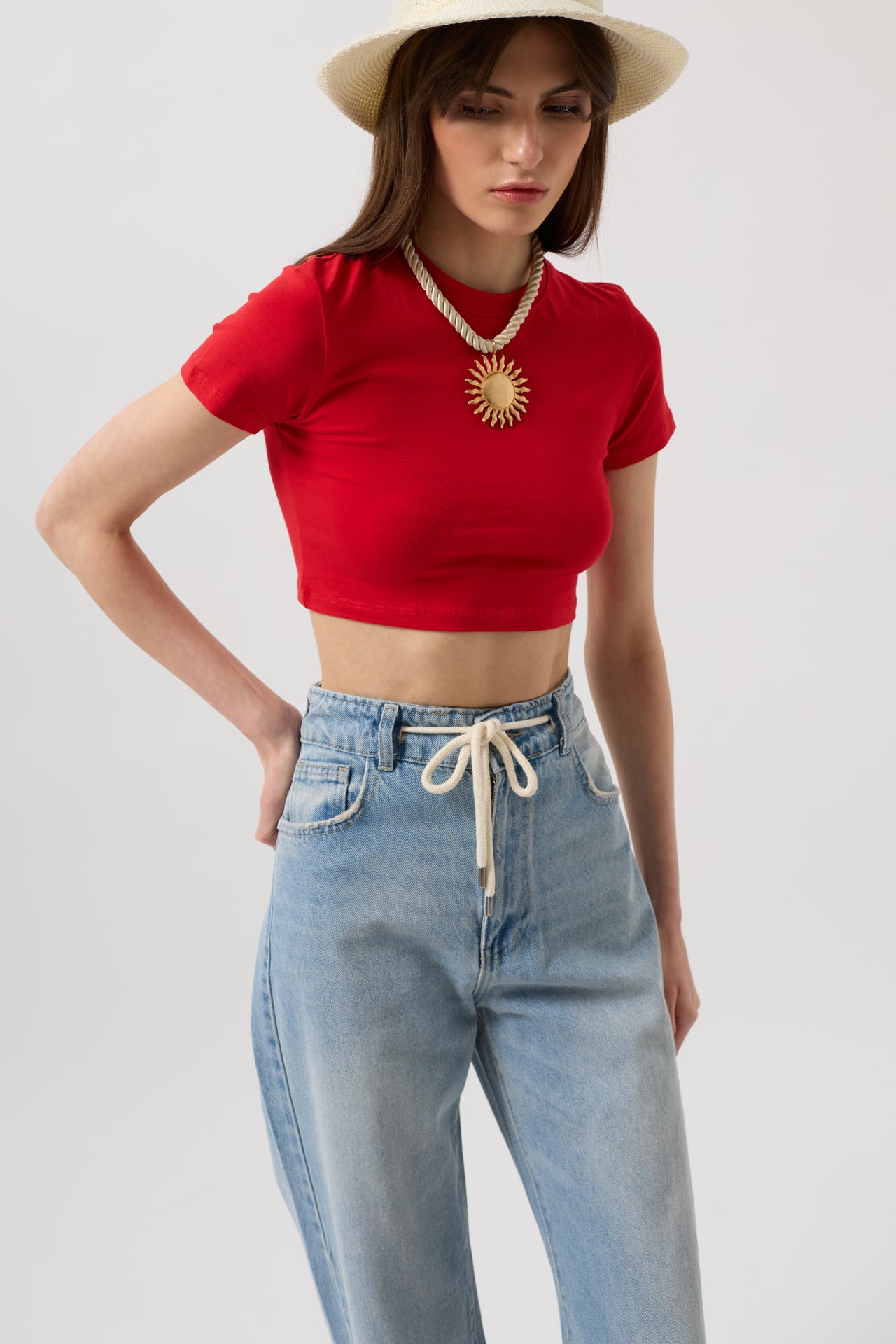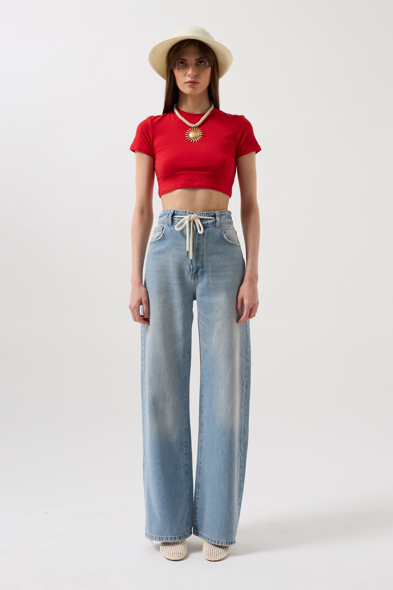 Five Pocket, Button and Zipper, Waist Cord Detail, High Waist Jeans