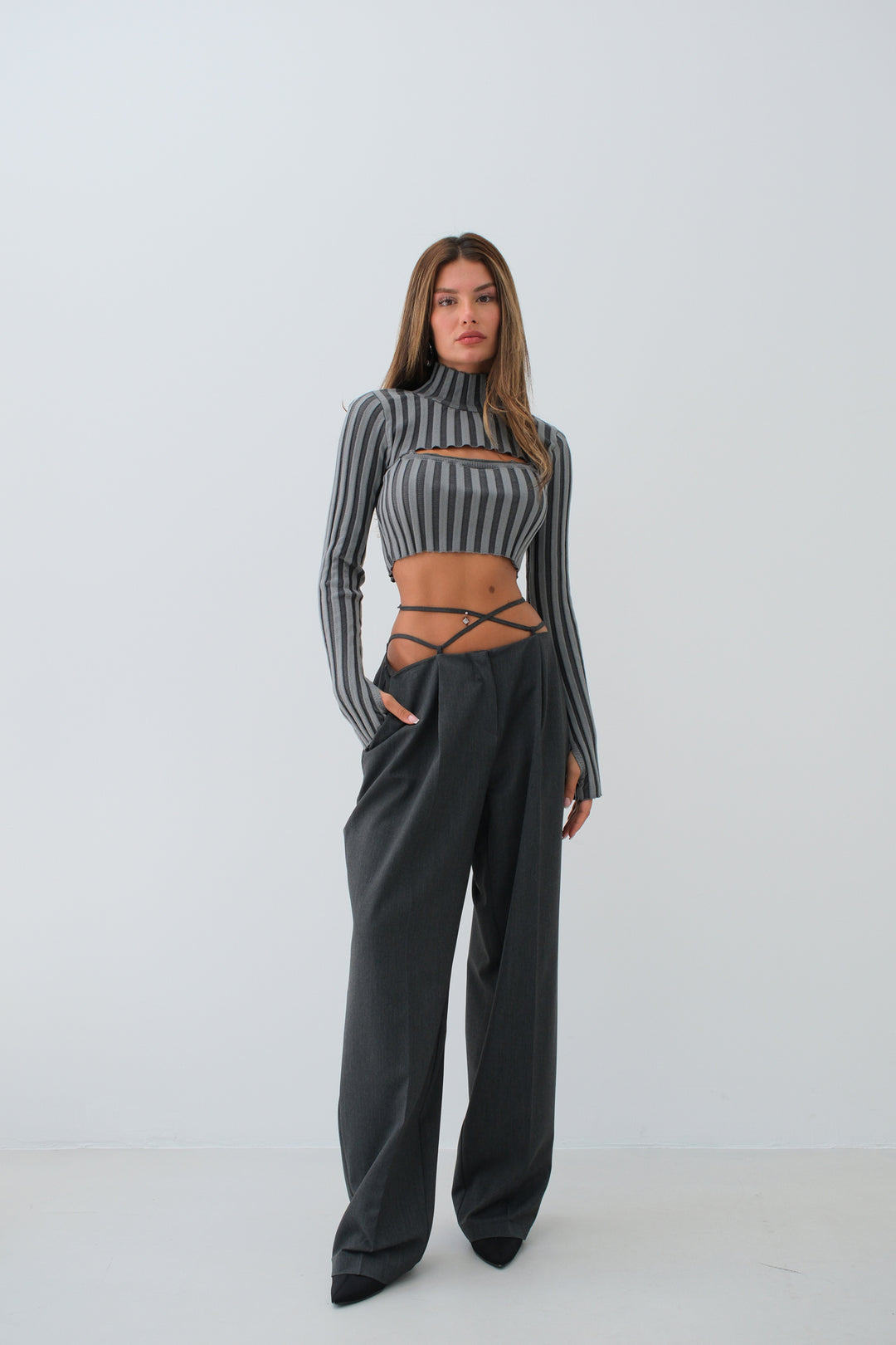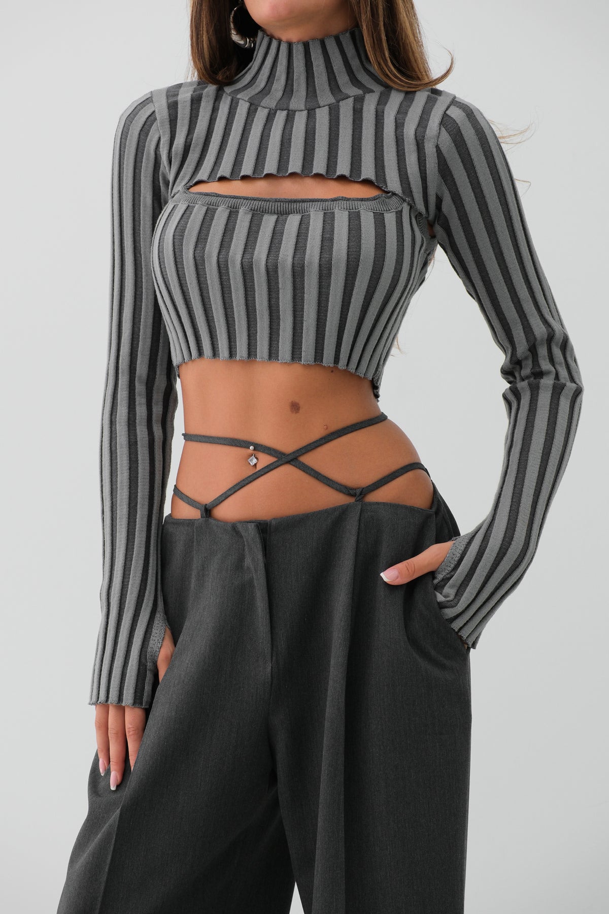 Half Turtleneck, Ribbed, Long Sleeve, Low Neck, Sweater, Top, Knitwear Crop