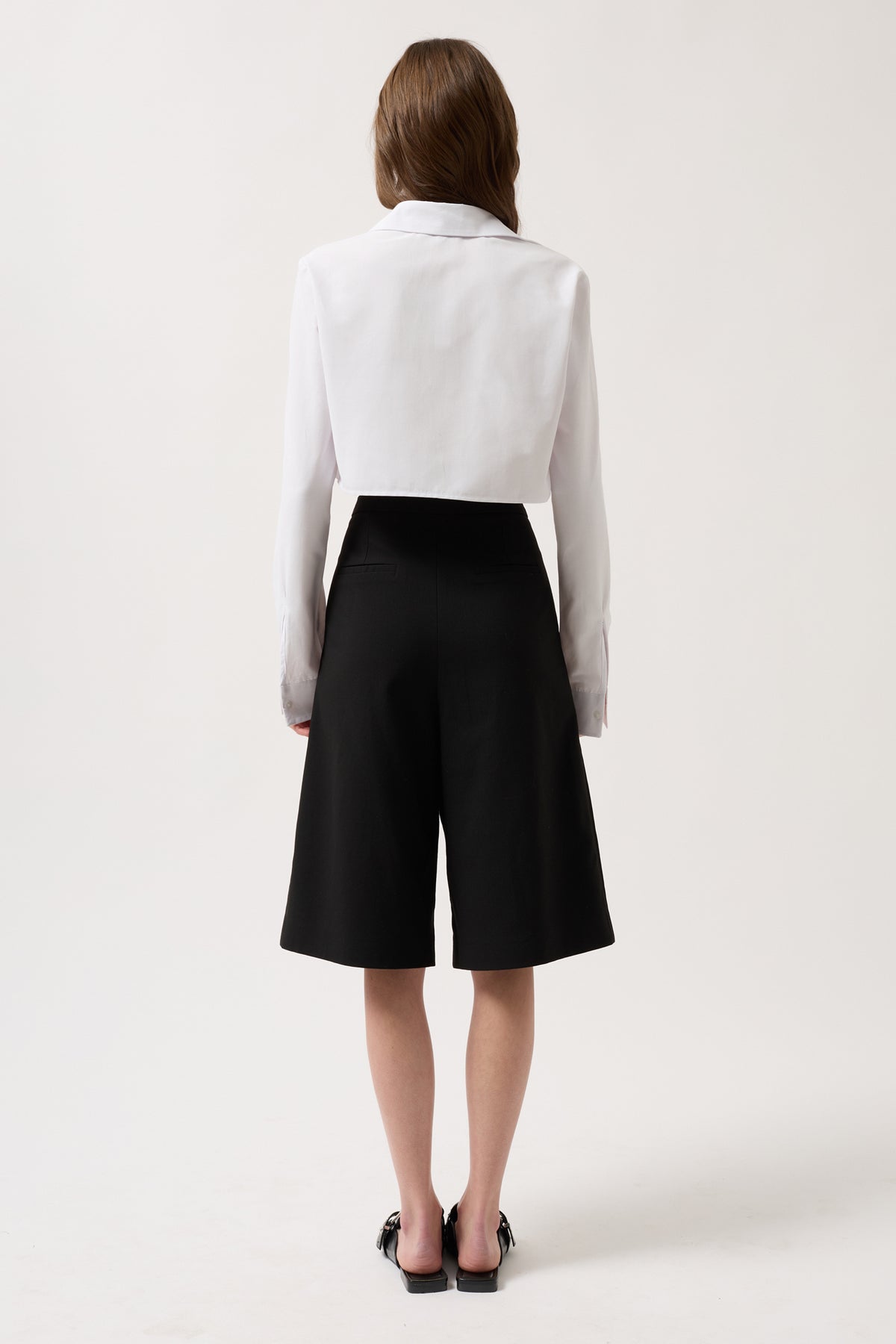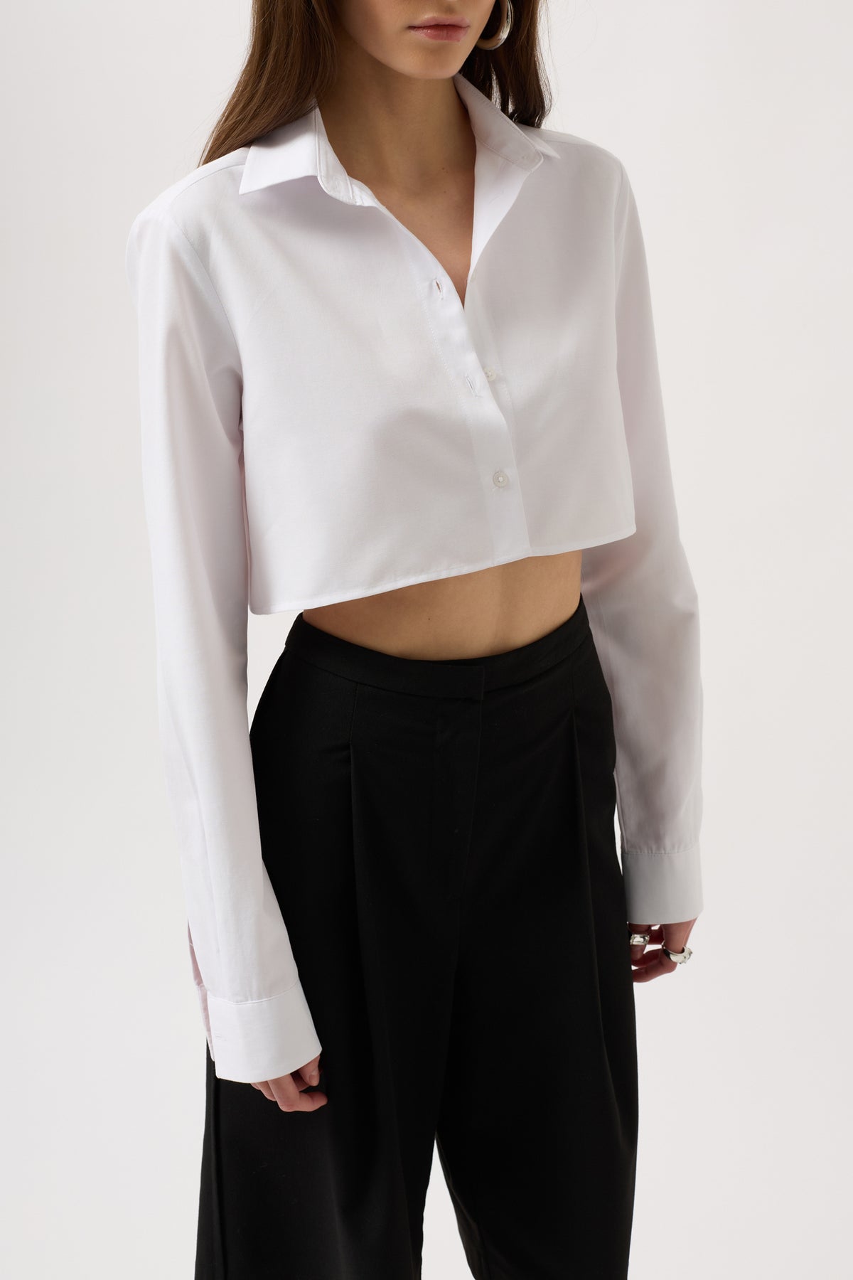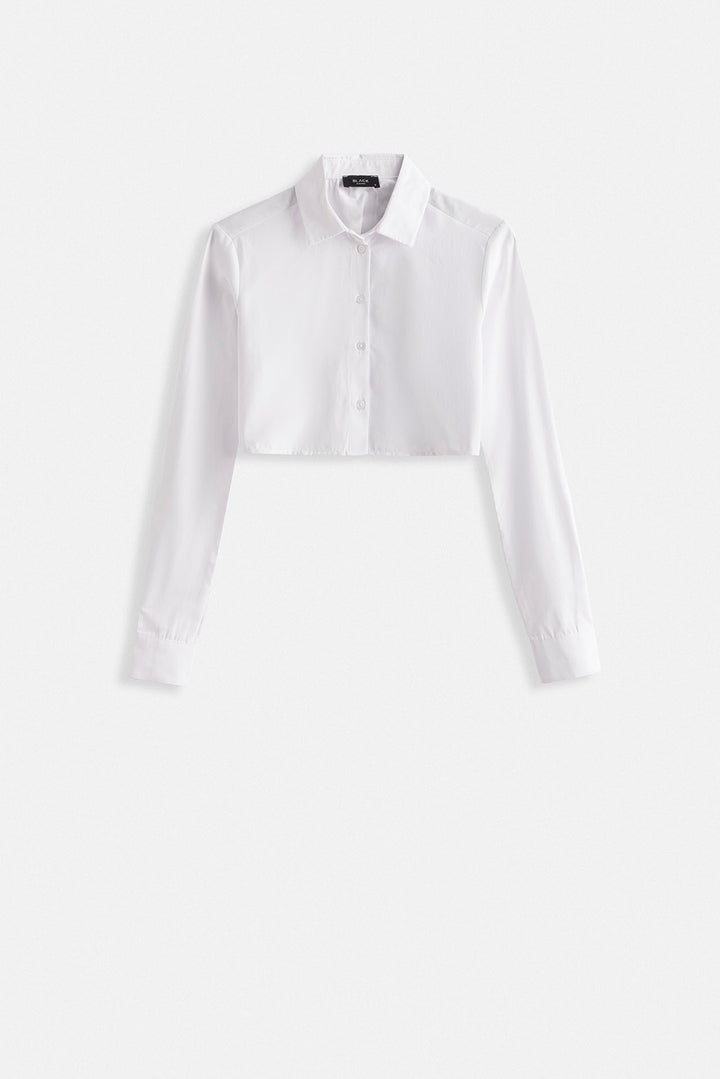 Poplin Fabric Crop Shirt with Single Button Cuff