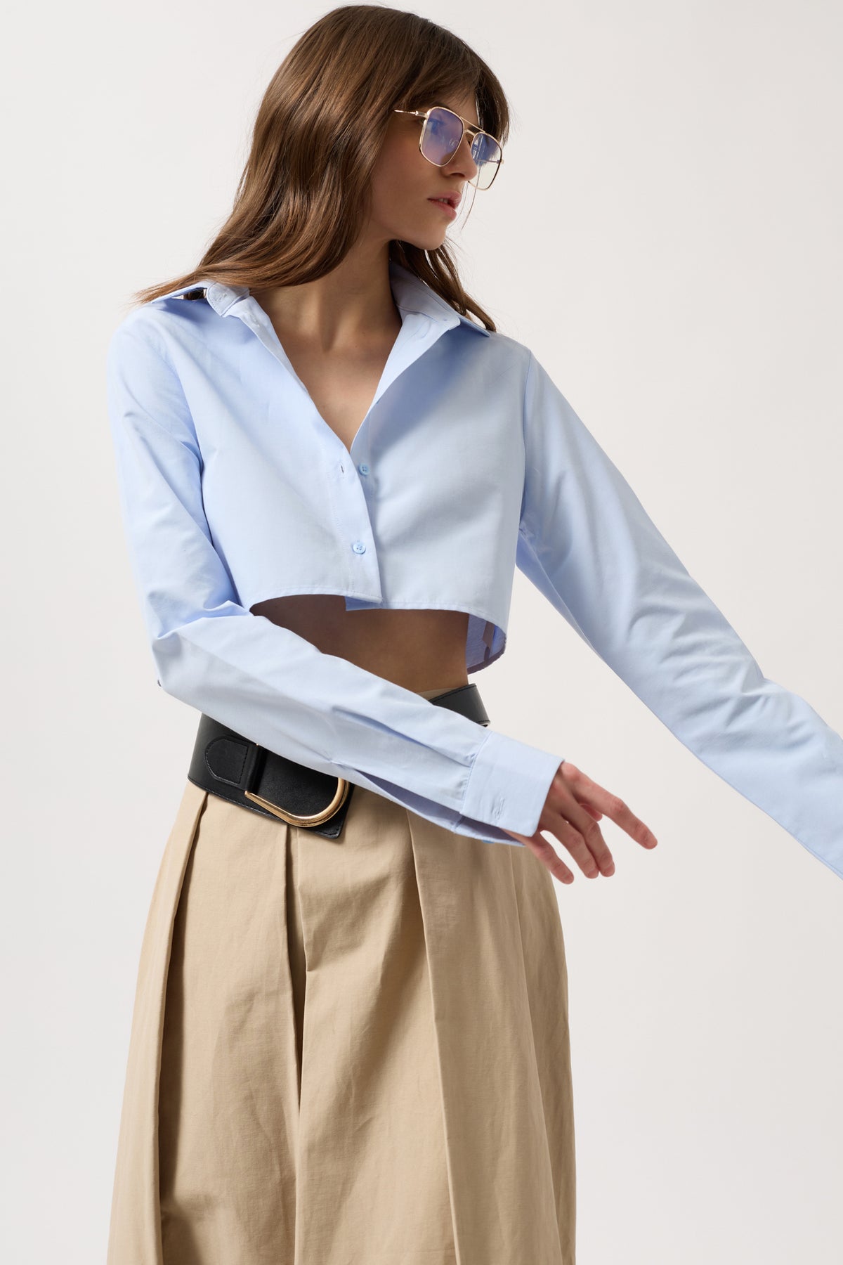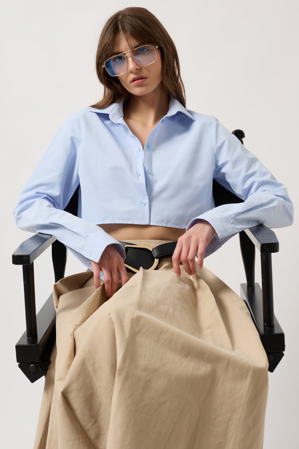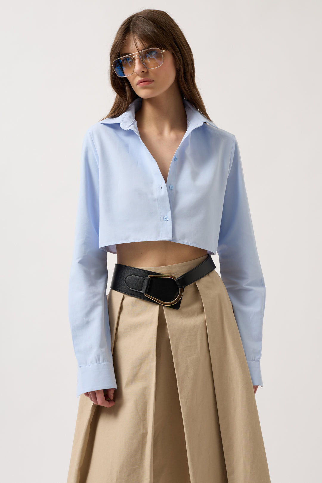 Poplin Fabric Crop Shirt with Single Button Cuff