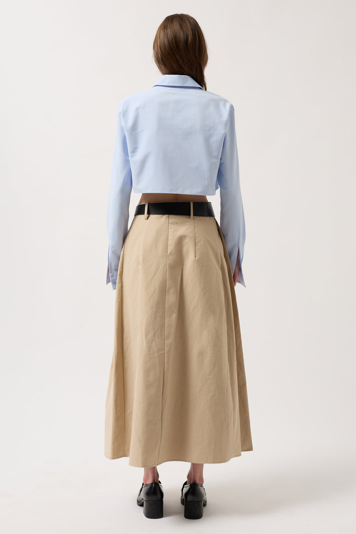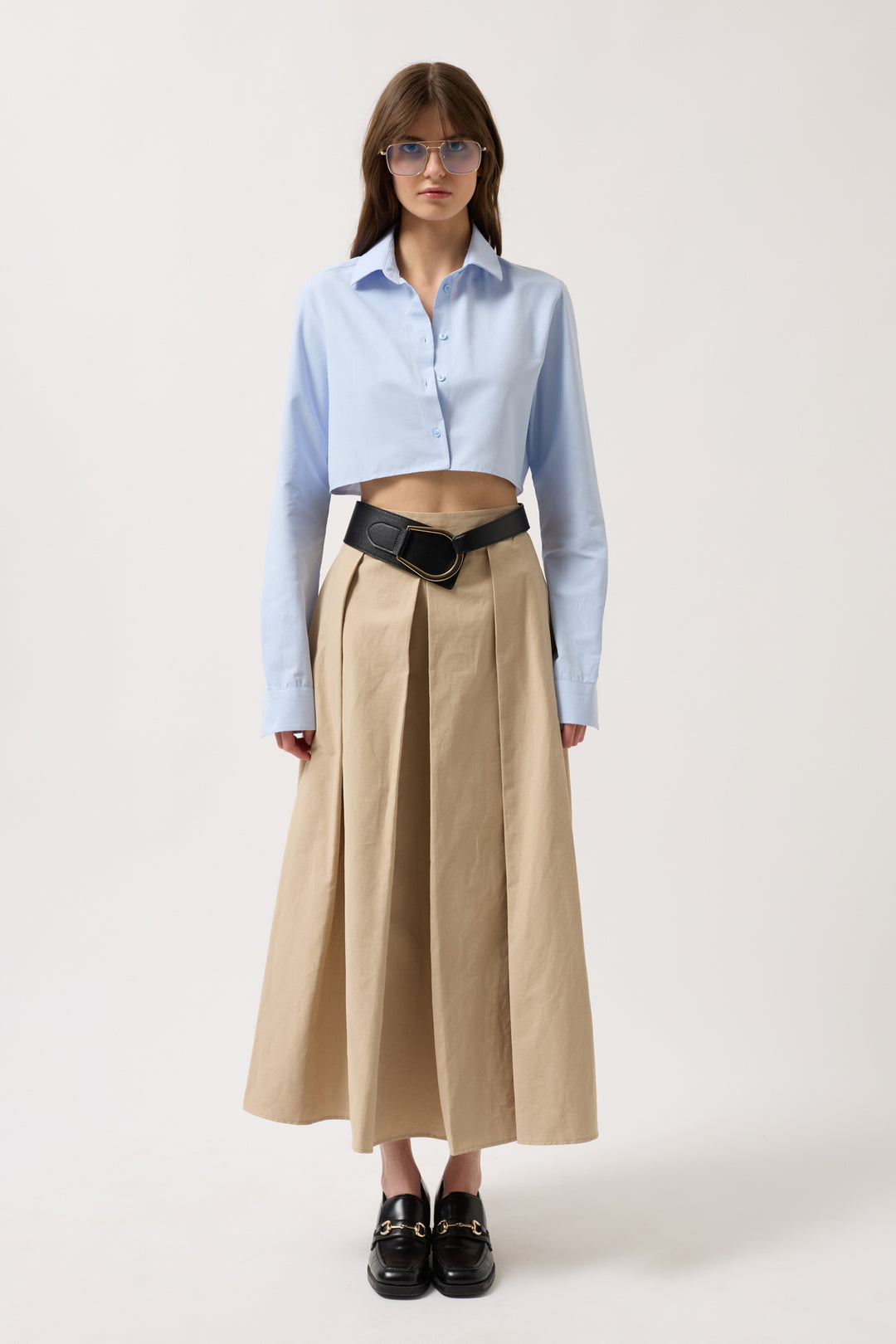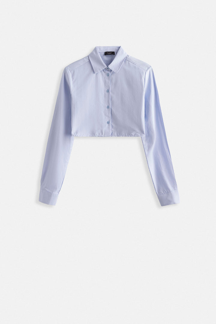 Poplin Fabric Crop Shirt with Single Button Cuff