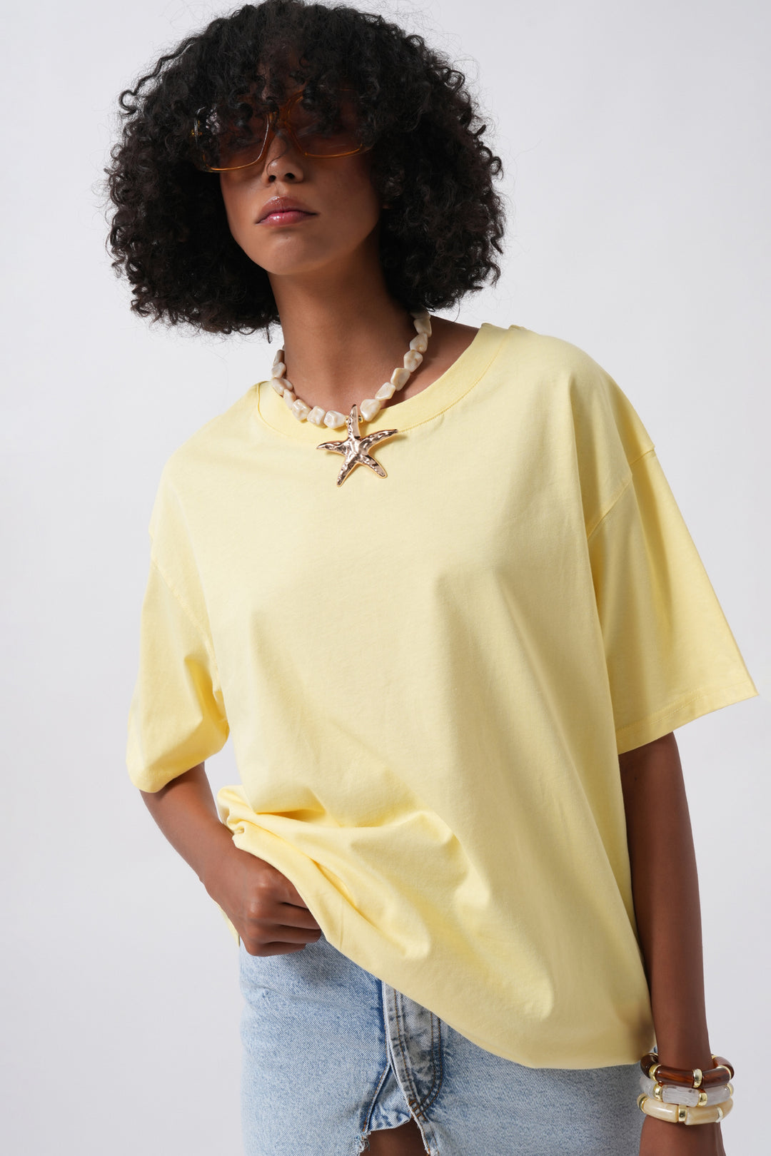 Cotton Fabric, Relaxed Cut, Shoulder Seam Detailed T-Shirt