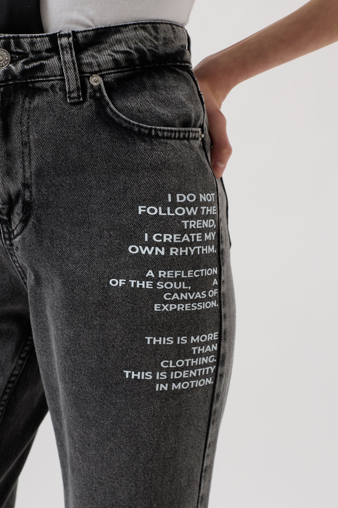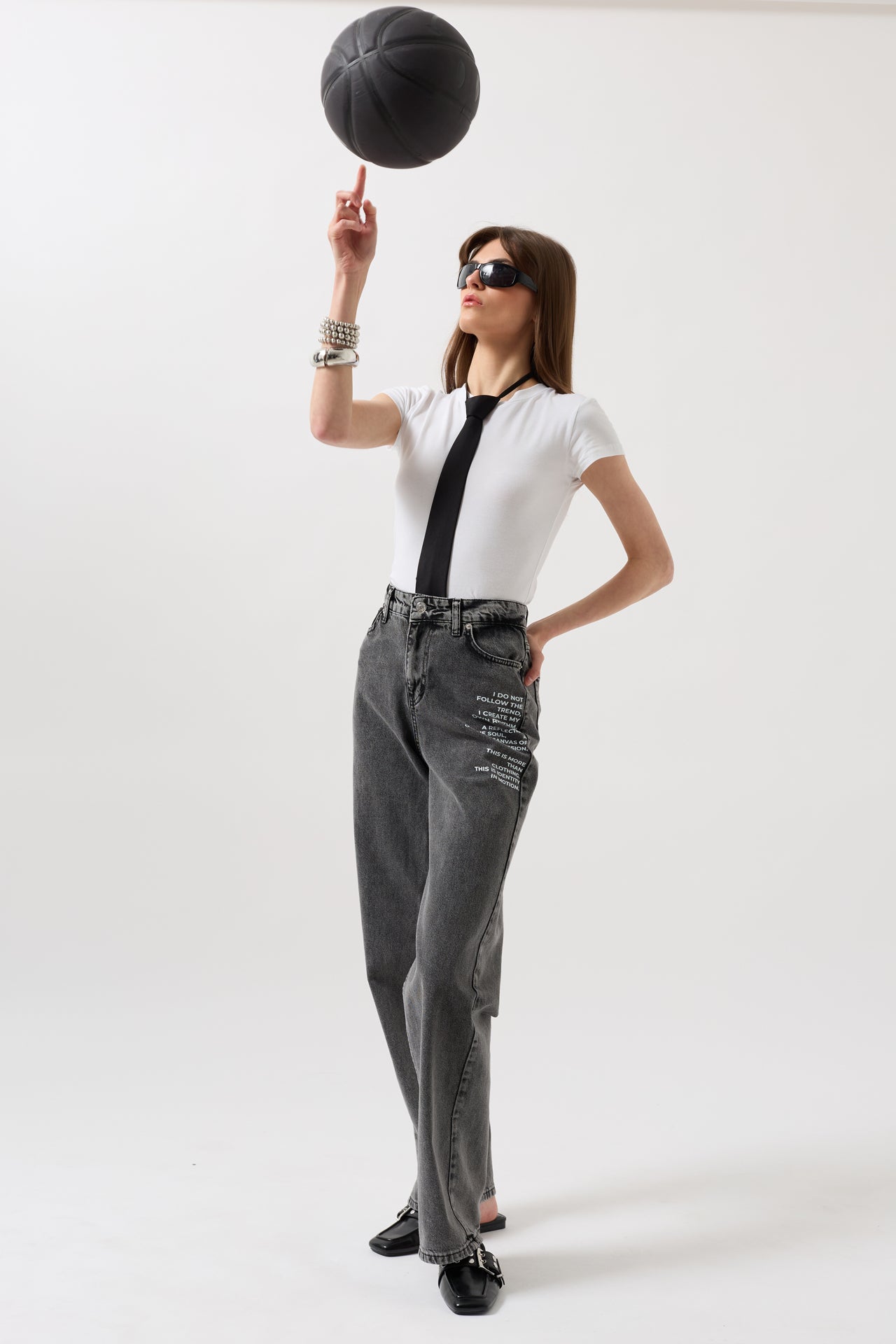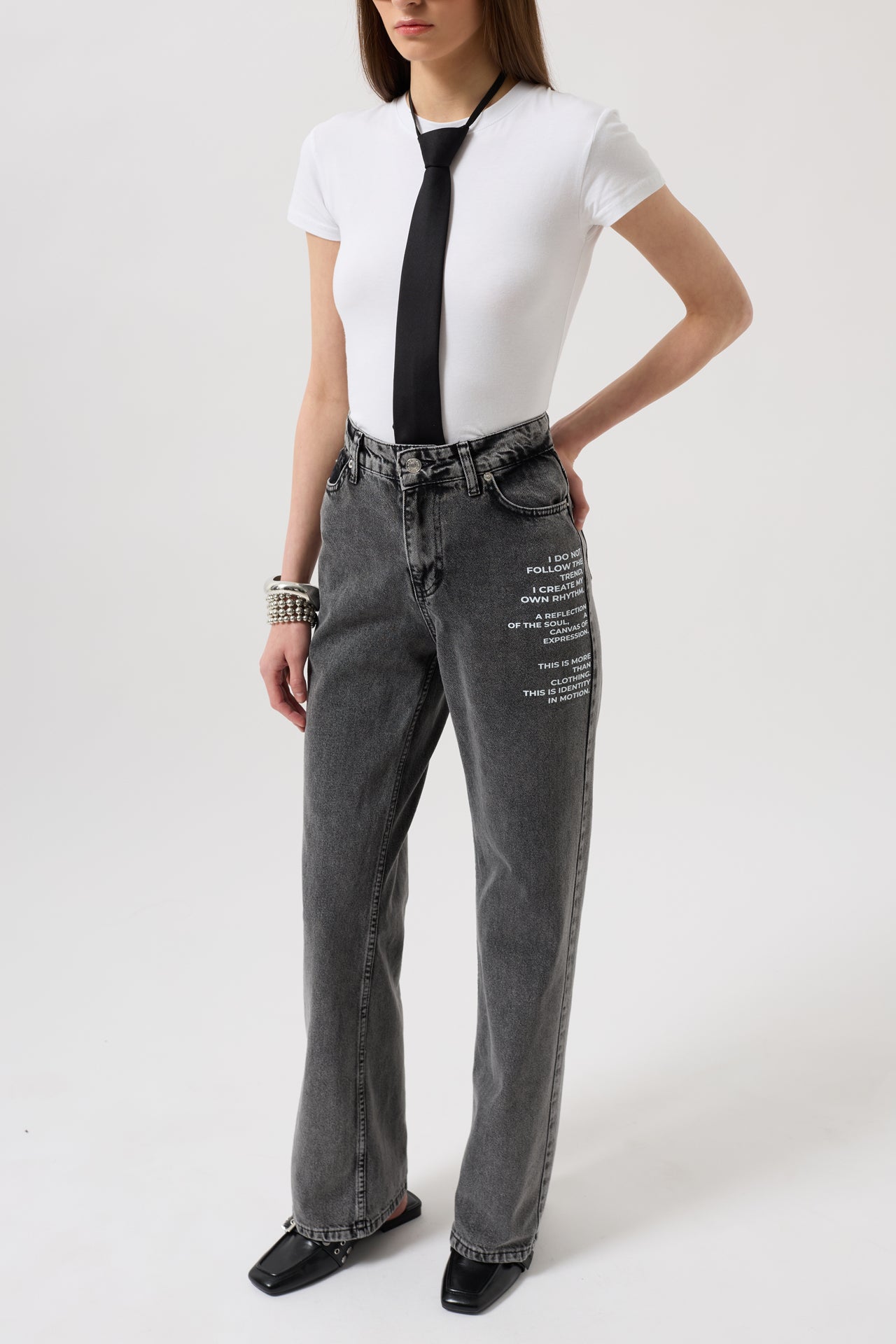 Five Pocket, Zipper and Button, Printed Detail, Low Waist Wide Leg Jeans