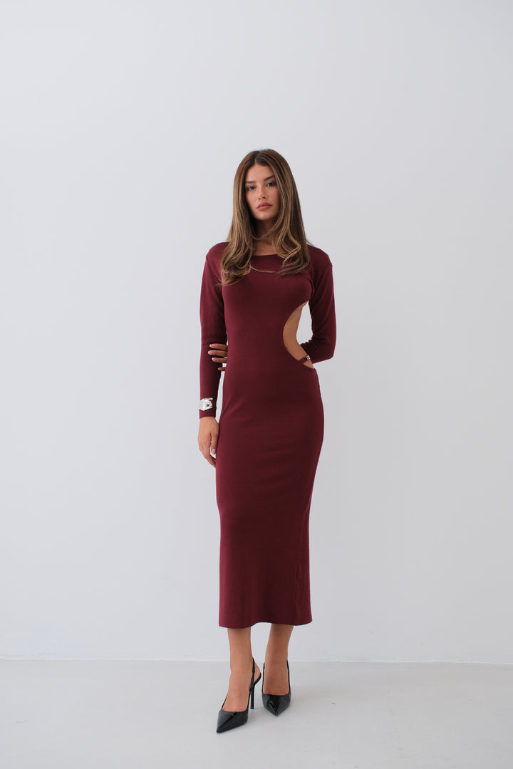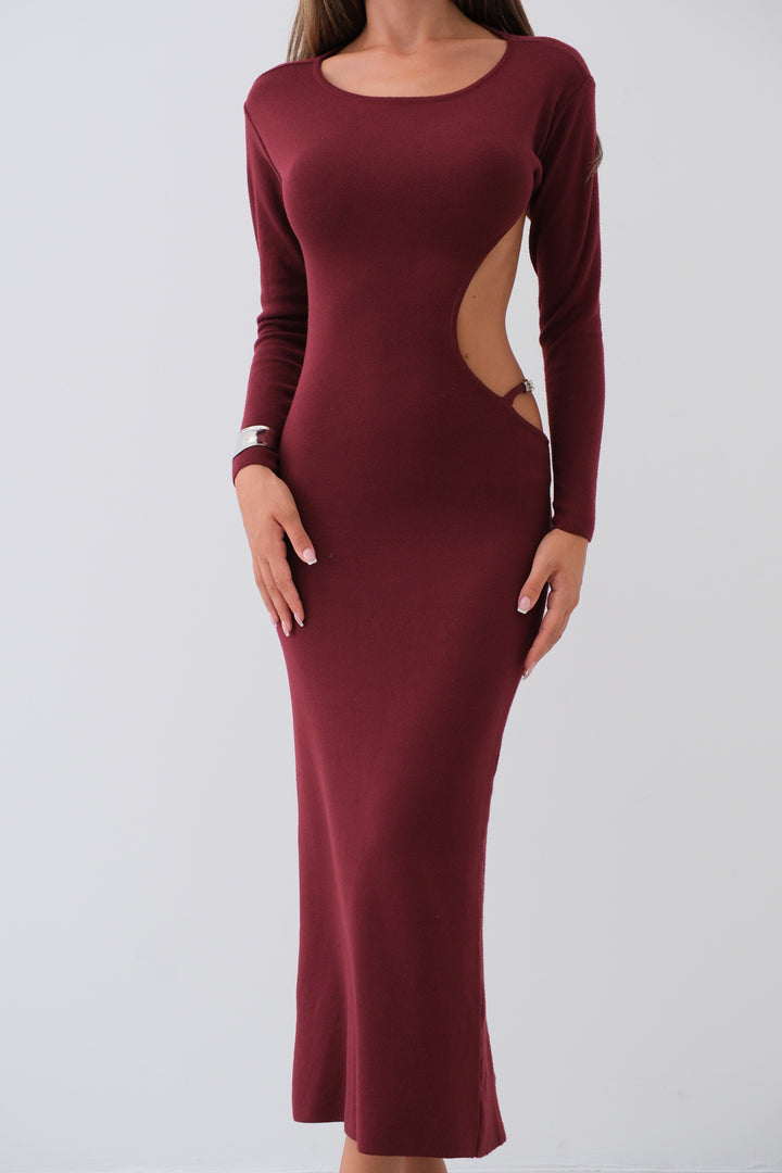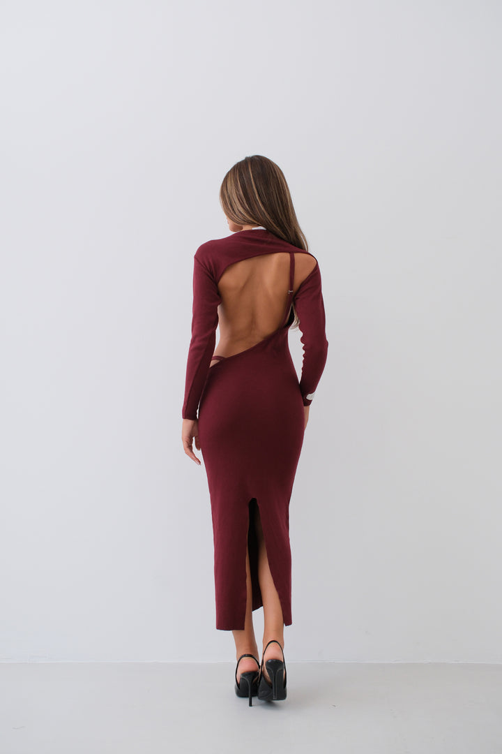Crew Neck Backless Burgundy Dress