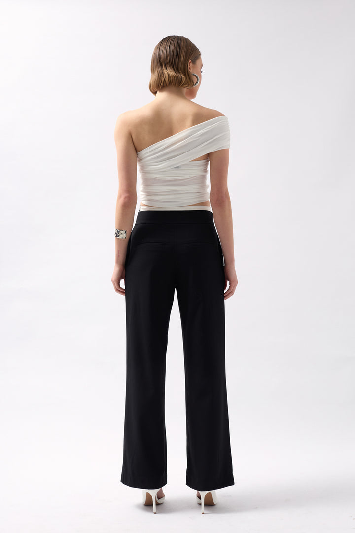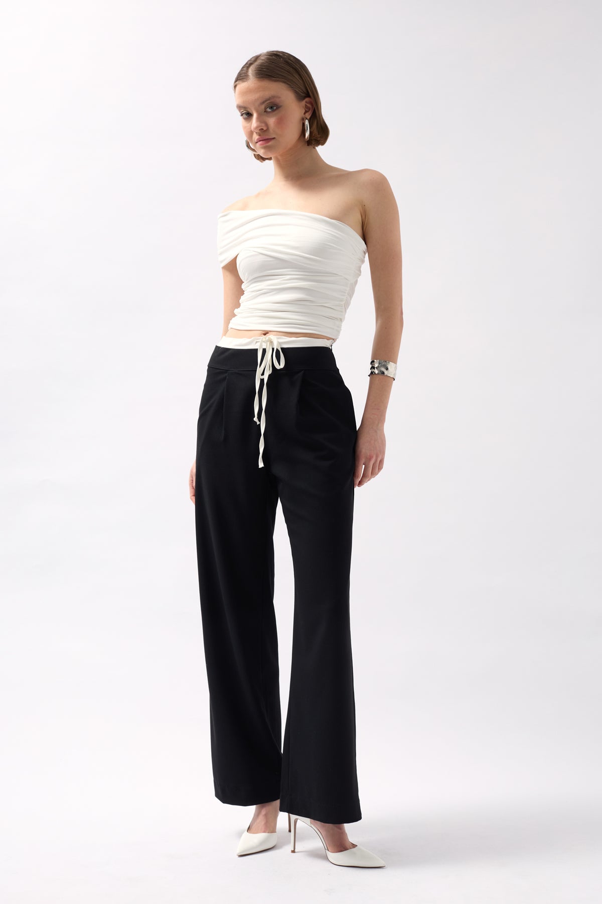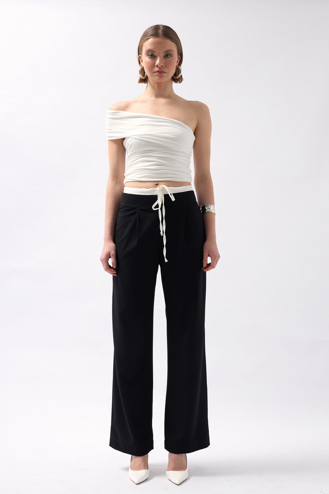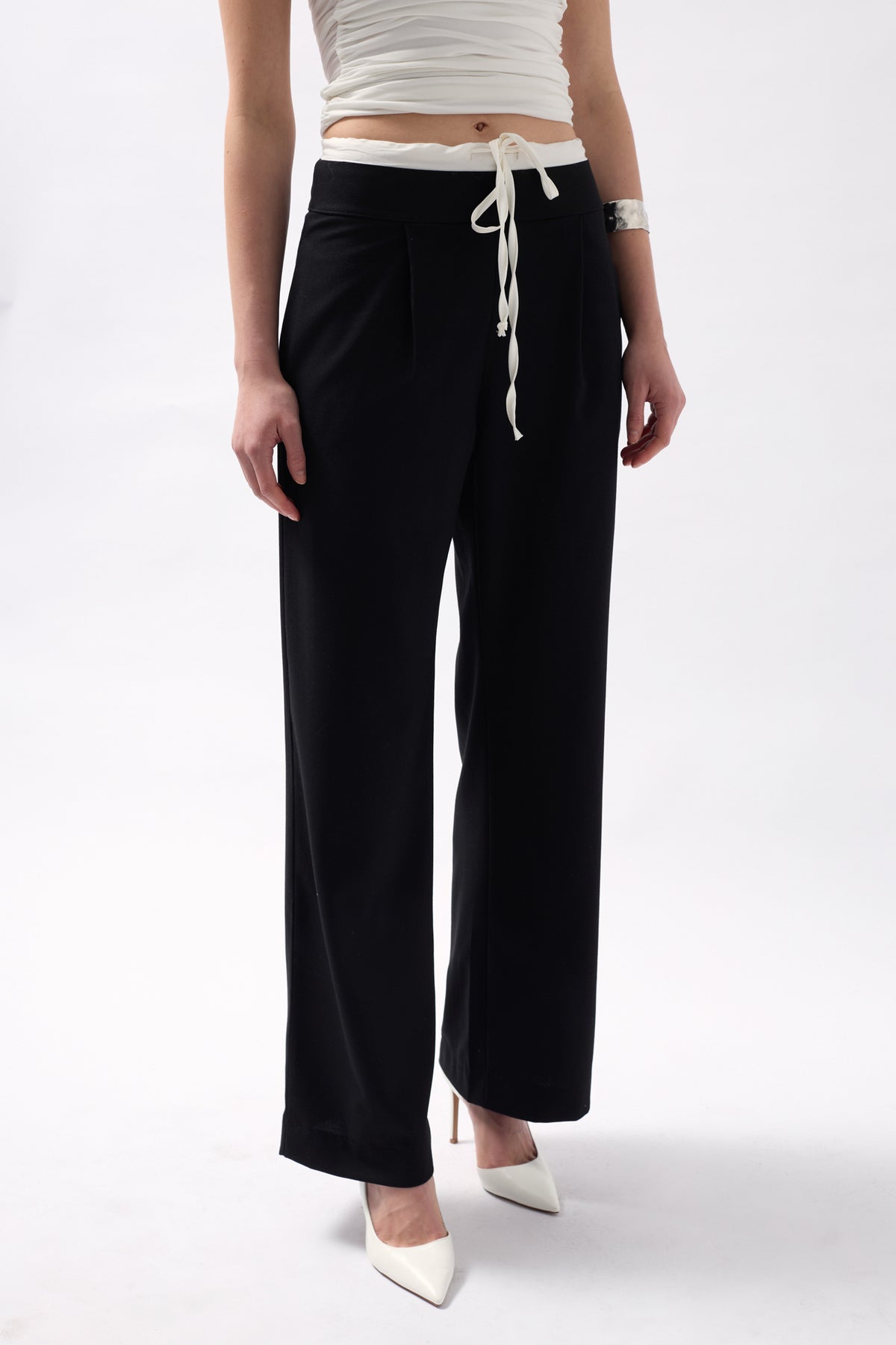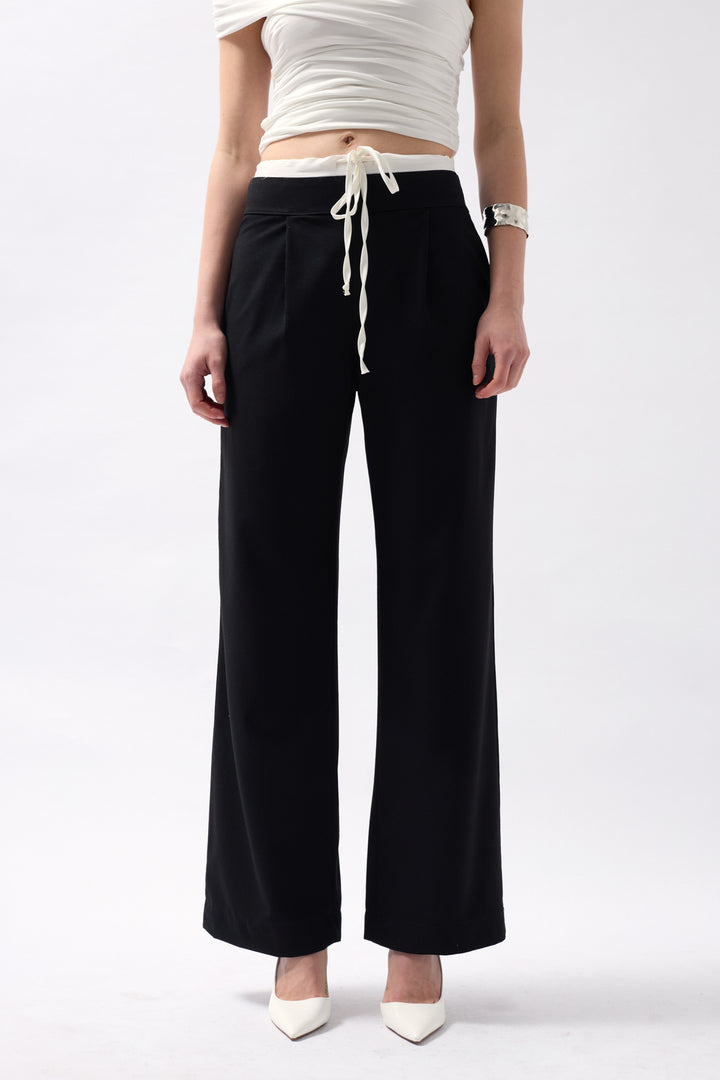 Double Pocket, Back Flota Pocket, Contrast Color, Waist Tie Detail, Hidden Zipper, Double Pleated, Straight Cut Trousers