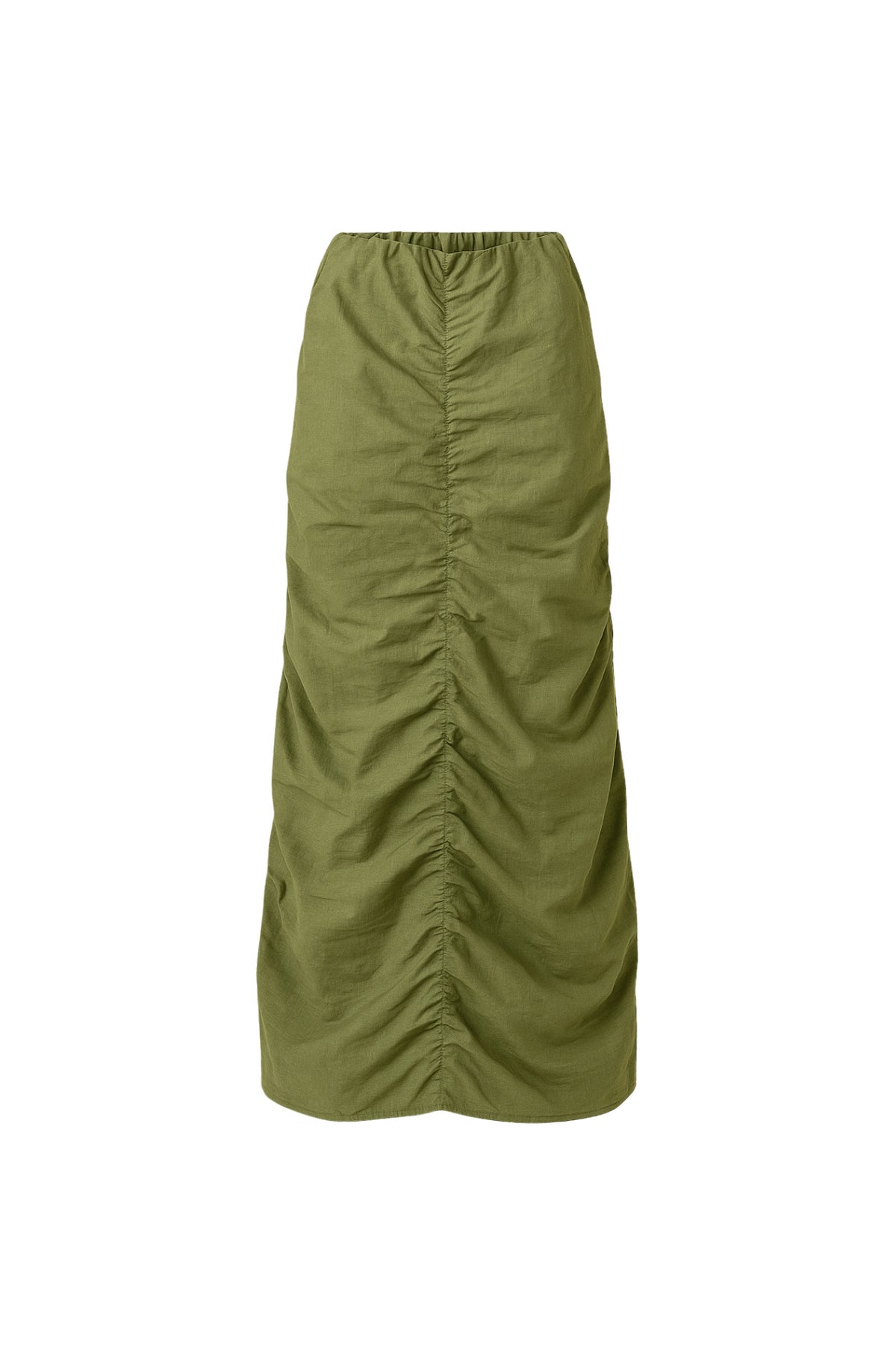 Maxi Length, High Waist, Gathered Detail, Wrinkled Look Fabric, Straight Cut Skirt