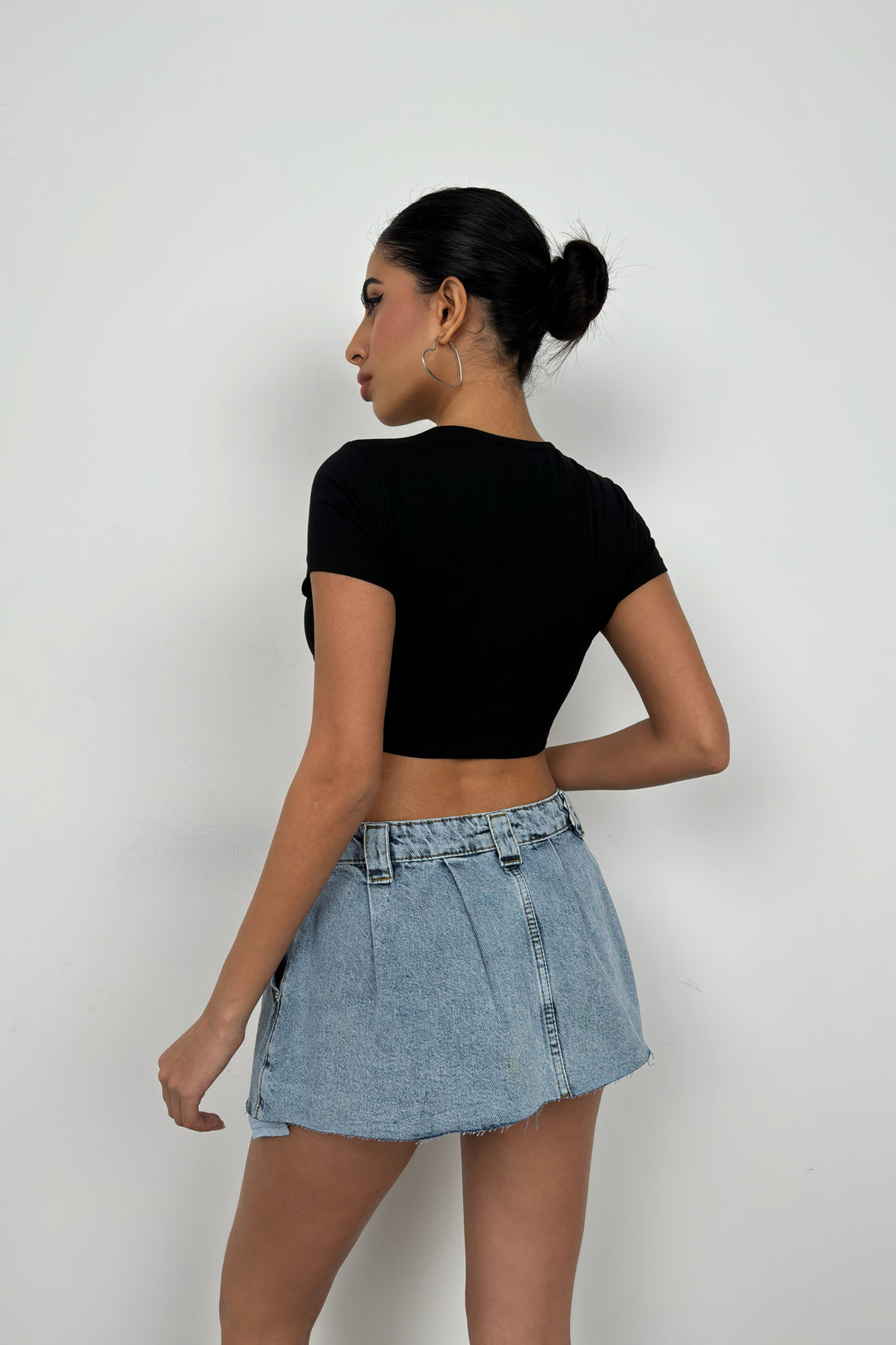 Gathered Detail, Short Sleeve, V Neck, Crop Blouse