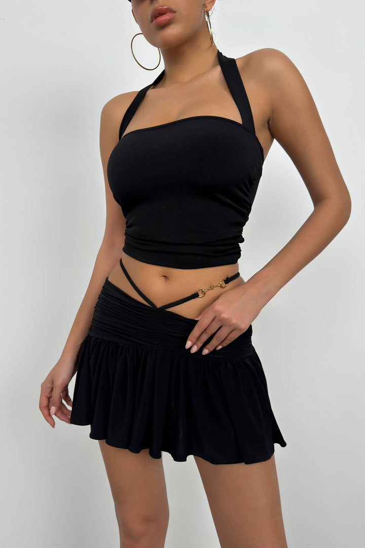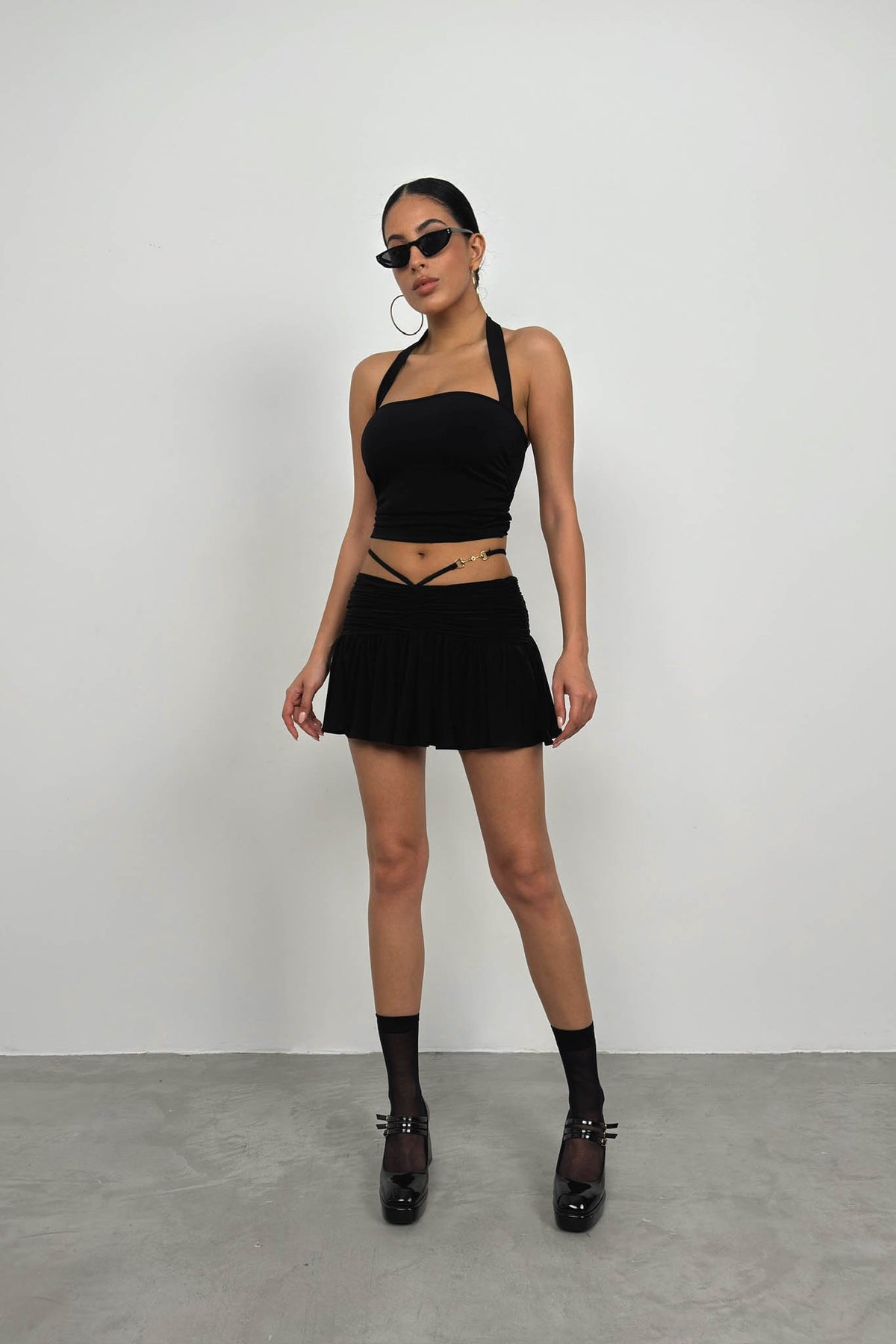 Pleated Waist, Elastic, Piping, Thin String, Accessory, Mini Skirt